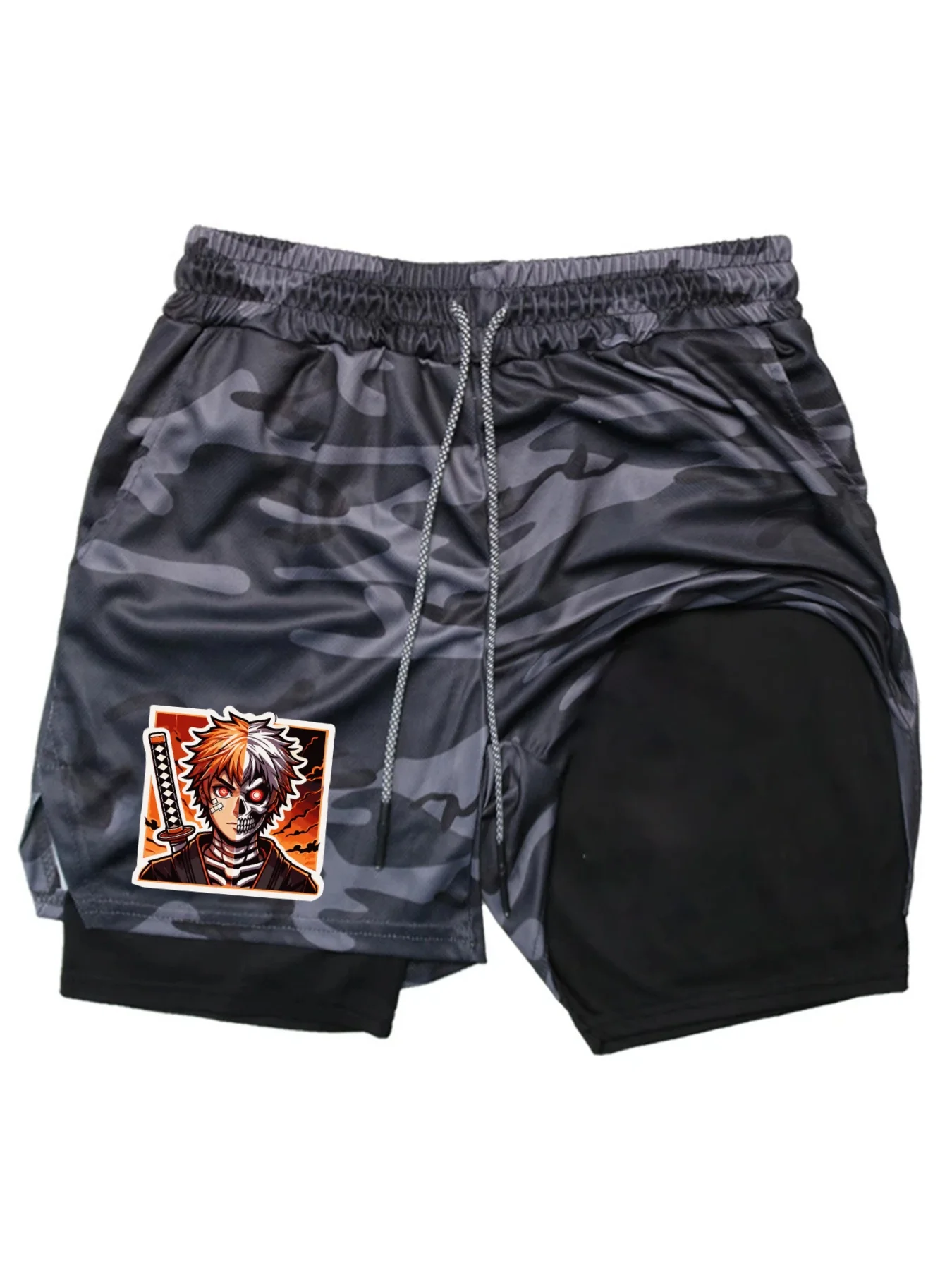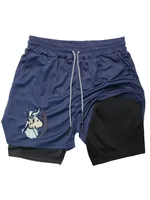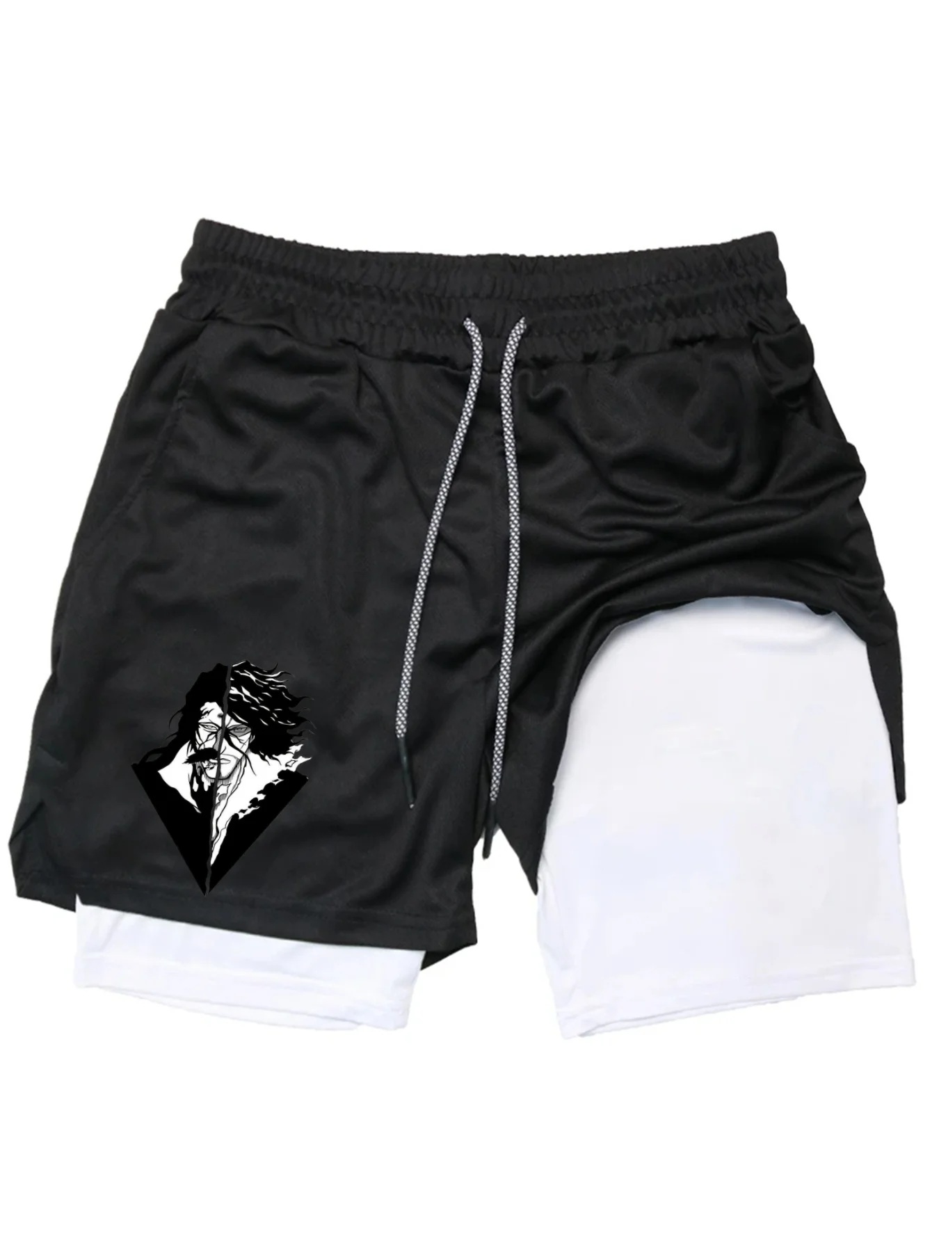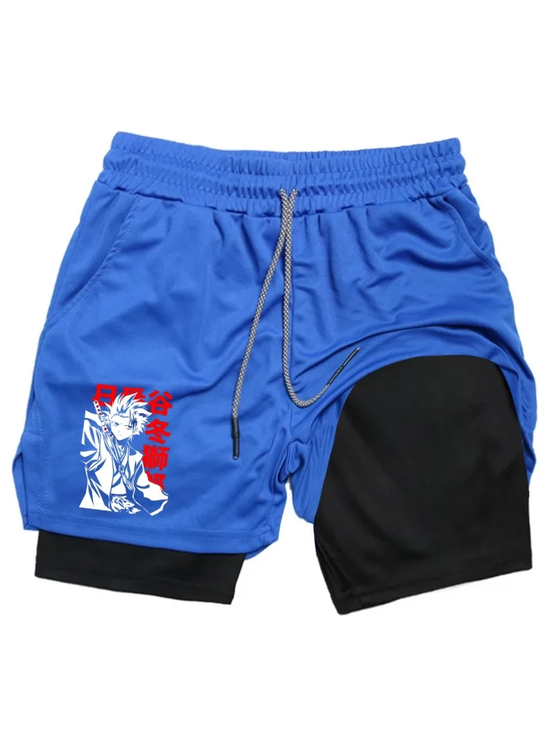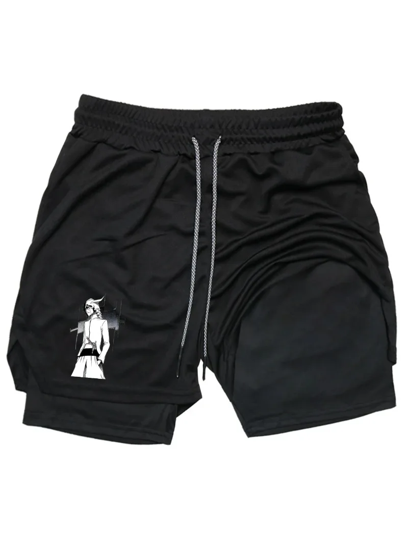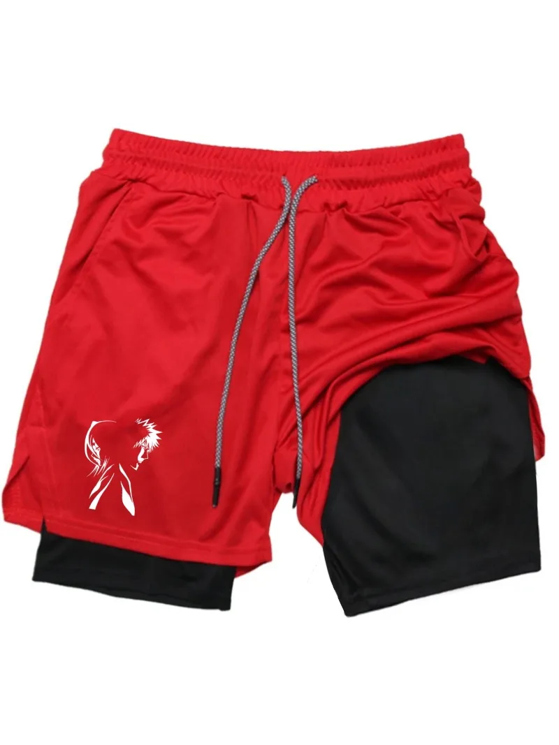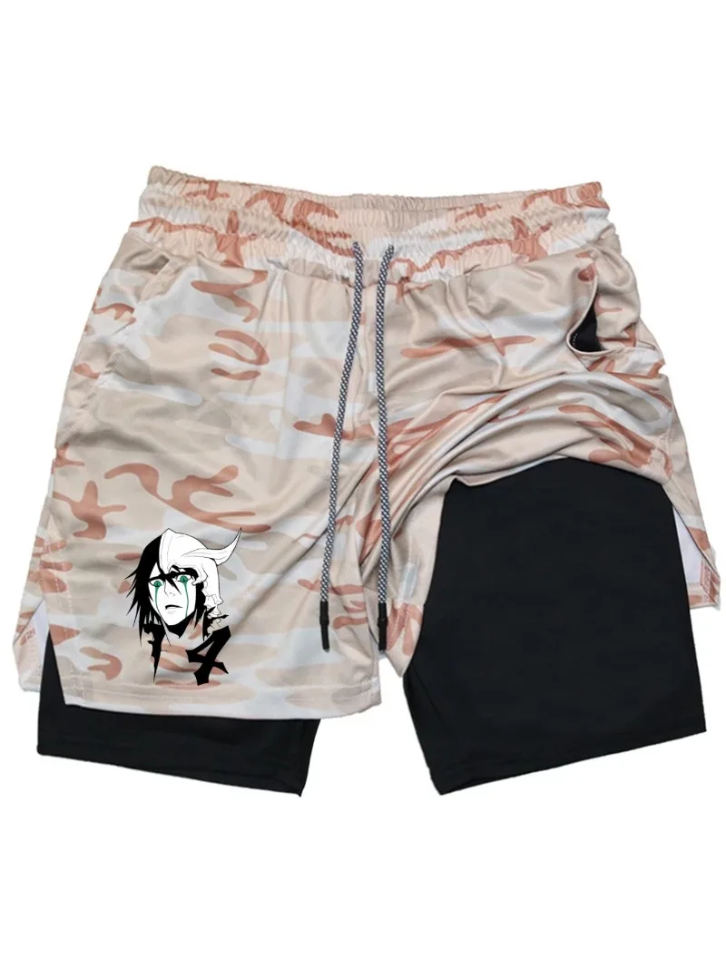 BleachPrint 2in1 Running Shorts Men Gym Workout Compression Shorts with Phone Pocket Towel Loop Summer Sport Athletic Activewear