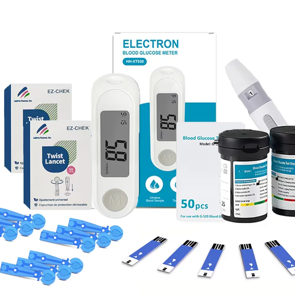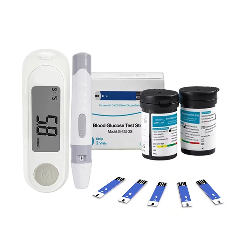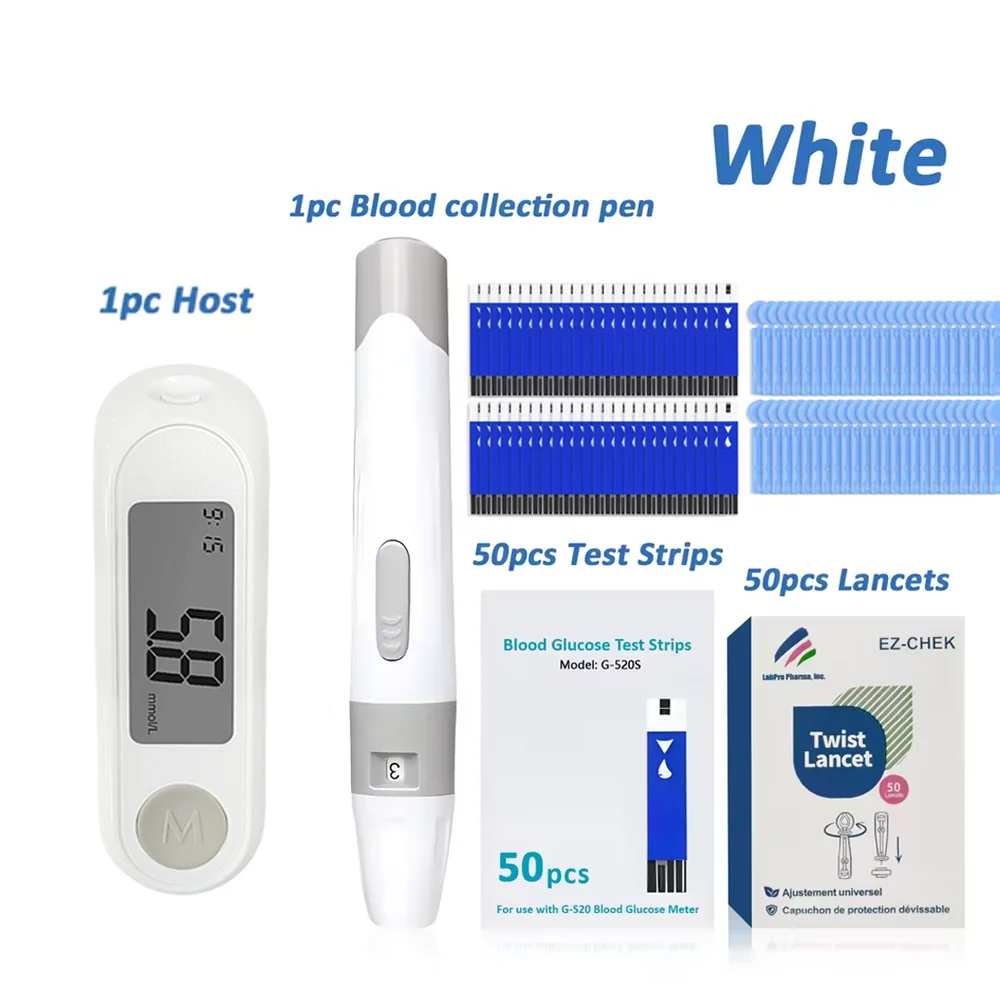 50pc set with meter: 1 Meter(mg/dL & mmol/L) + 1 Lancing device + 50 Test Srips + 50 Lancets