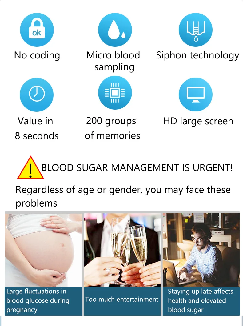 Sinocare SZ101 Blood Glucose Meter Diabetes Glucometer kit Blood Sugar Monitor or Test Stirps for Diabetic Medical Tester