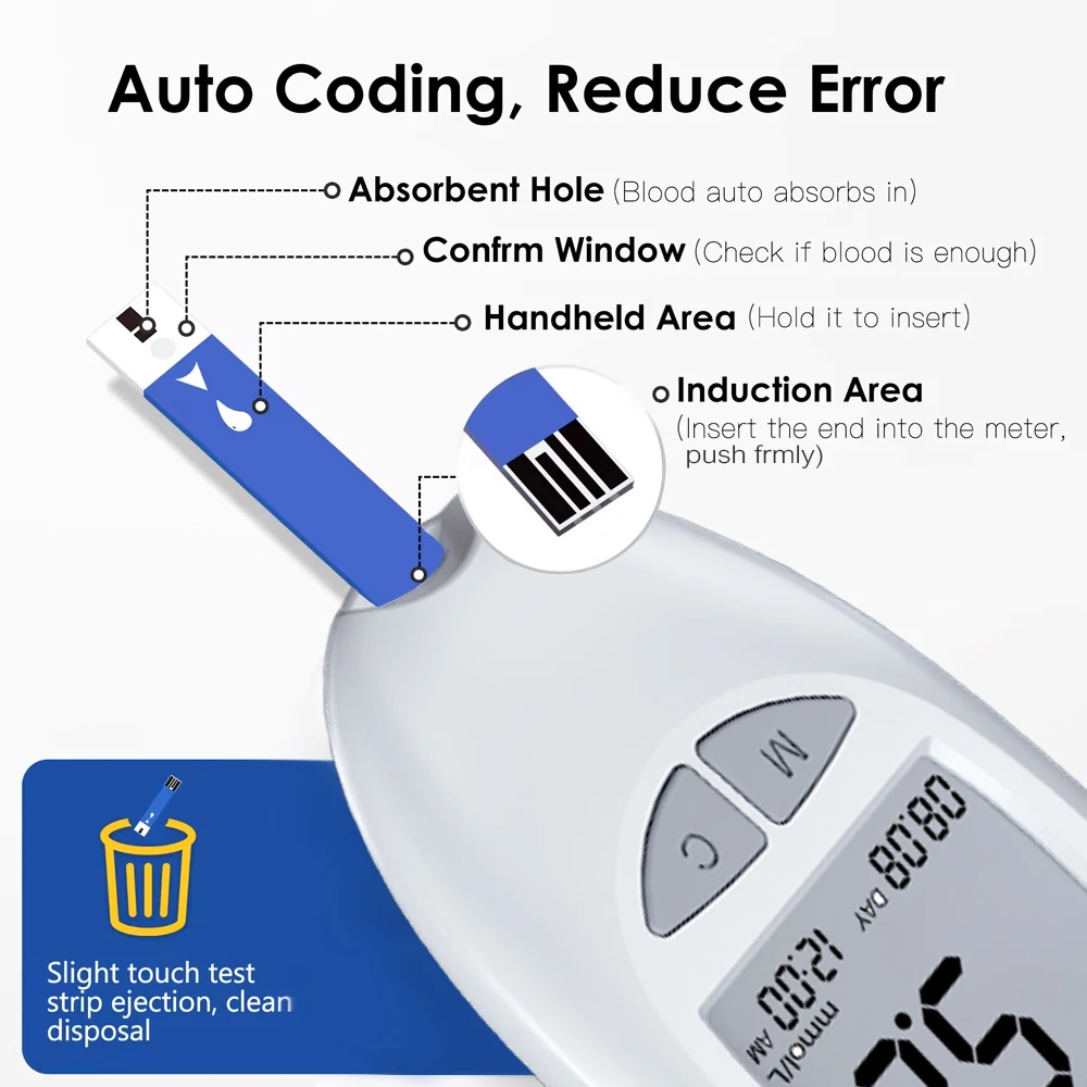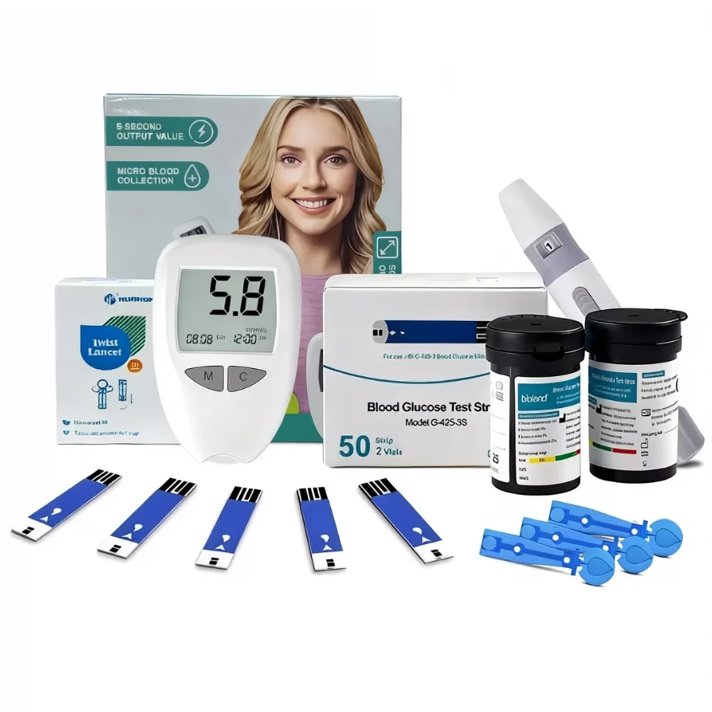 50pcs Meter Kit: 1 Meter(mg/dL & mmol/L) + 1 Lancing device + 50 Test Srips + 50 Lancets