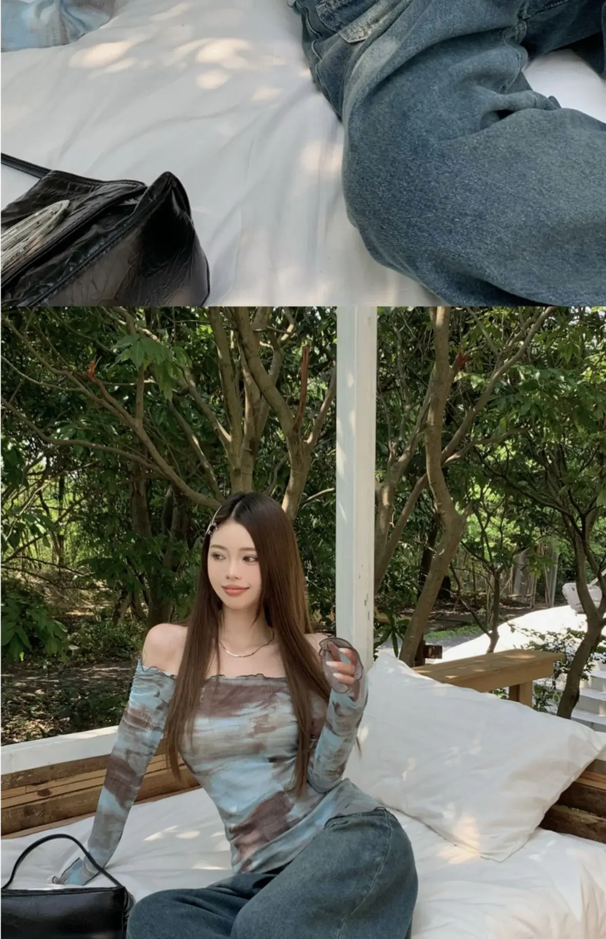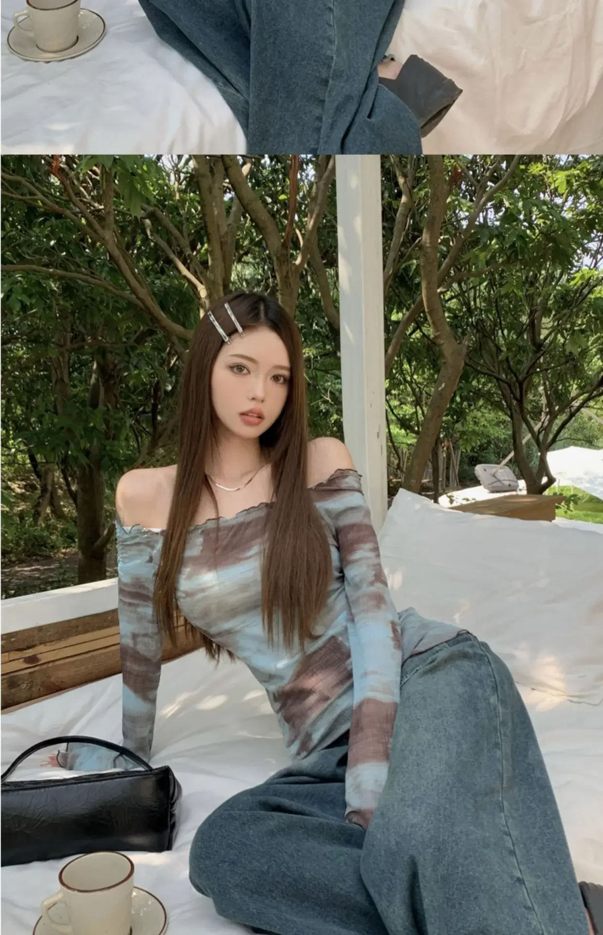 • Off-Shoulder Long-Sleeve : Featuring an off-shoulder long-sleeve design, this T-shirt provides a stylish and comfortable fit for summer wear.