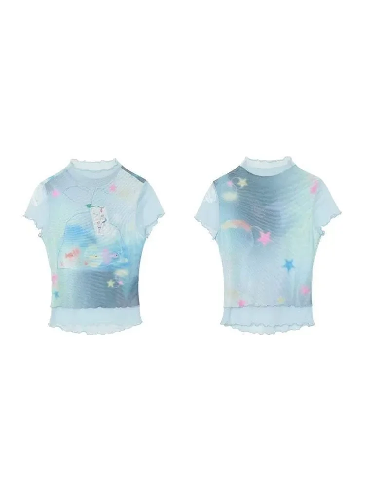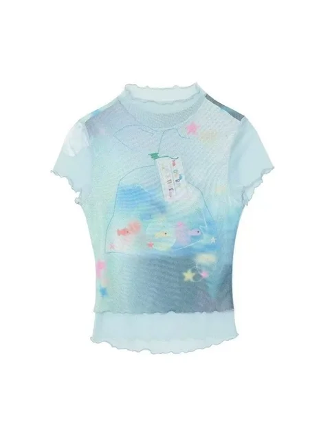 Embrace the Y2K aesthetic with this cute and spicy half-high neck T-shirt, perfect for a trendy look.