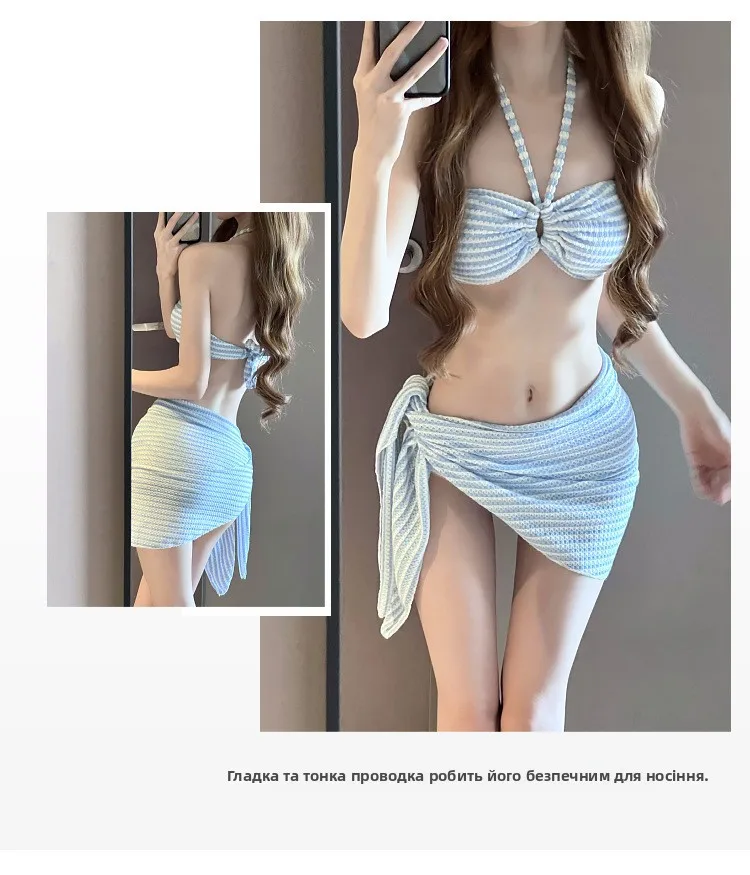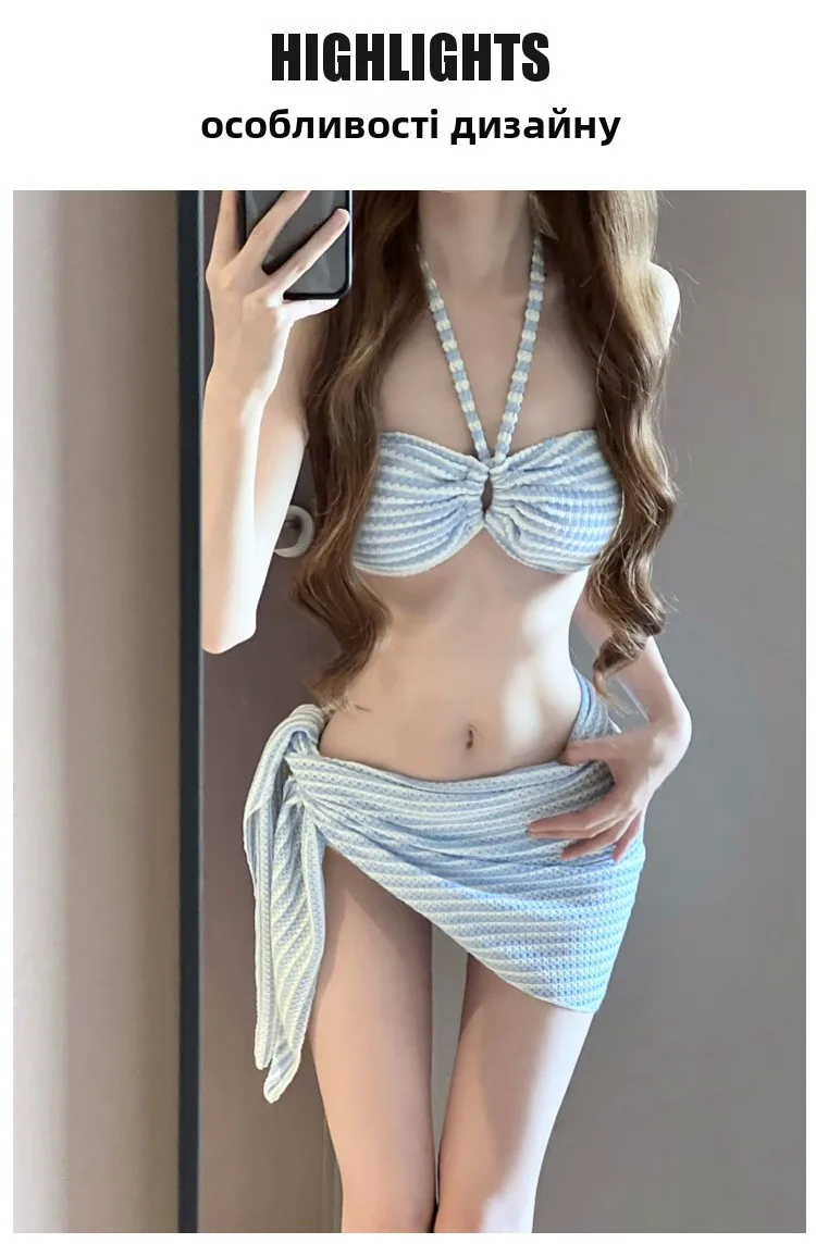 This bikini set comes as a three-piece set, offering versatility and allowing you to mix and match pieces to create different looks.