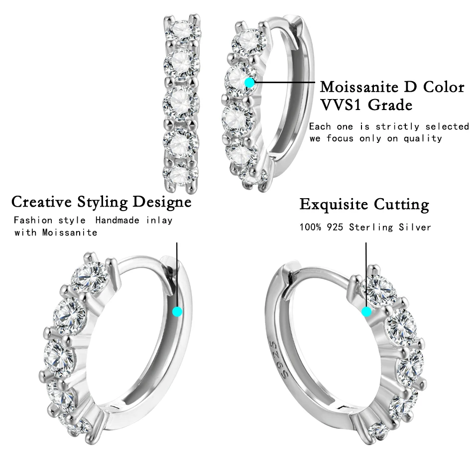 BLUEENCH D Color Moissanite Loop Earring 925 Sterling Sliver Plated with 18k White Gold Earring for Women Sparkling Fine Jewelry