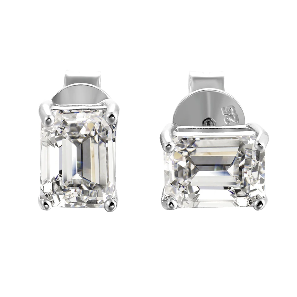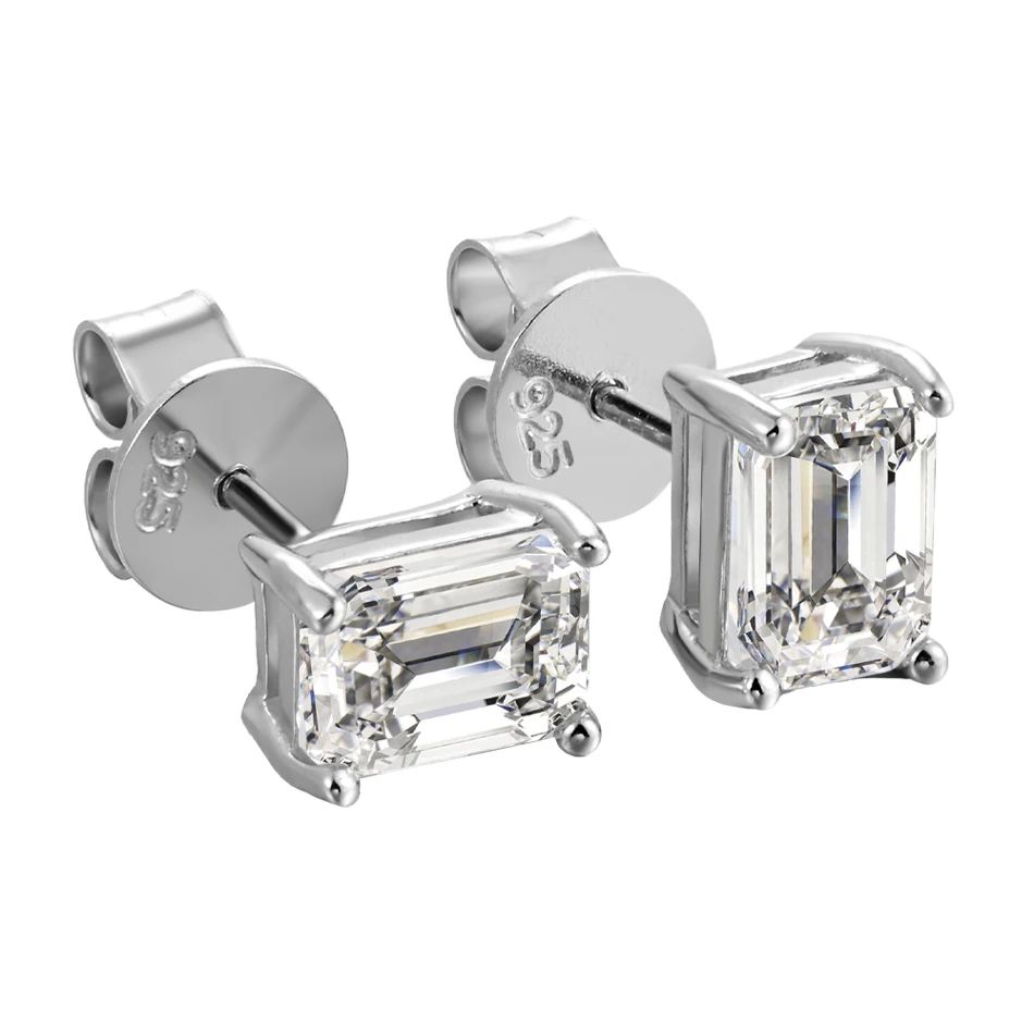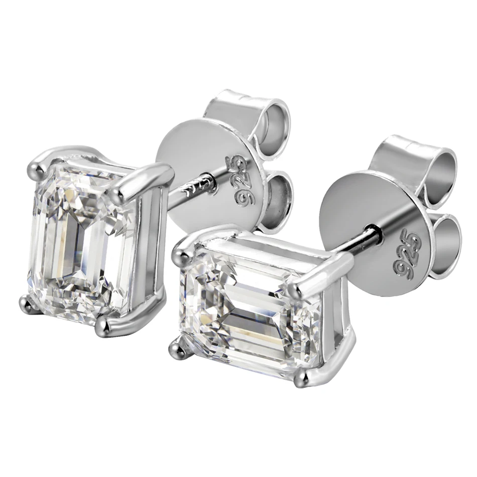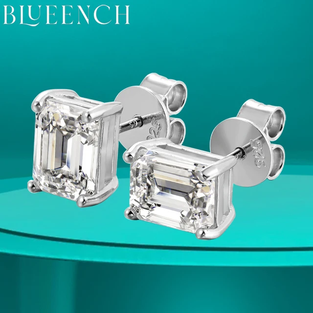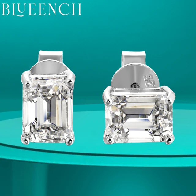 BLUEENCH D VVS1 Emerald Cut Moissanite Earring s925 Sterling Sliver Plated with 18k White Gold Earrings for Women Fine Jewelry