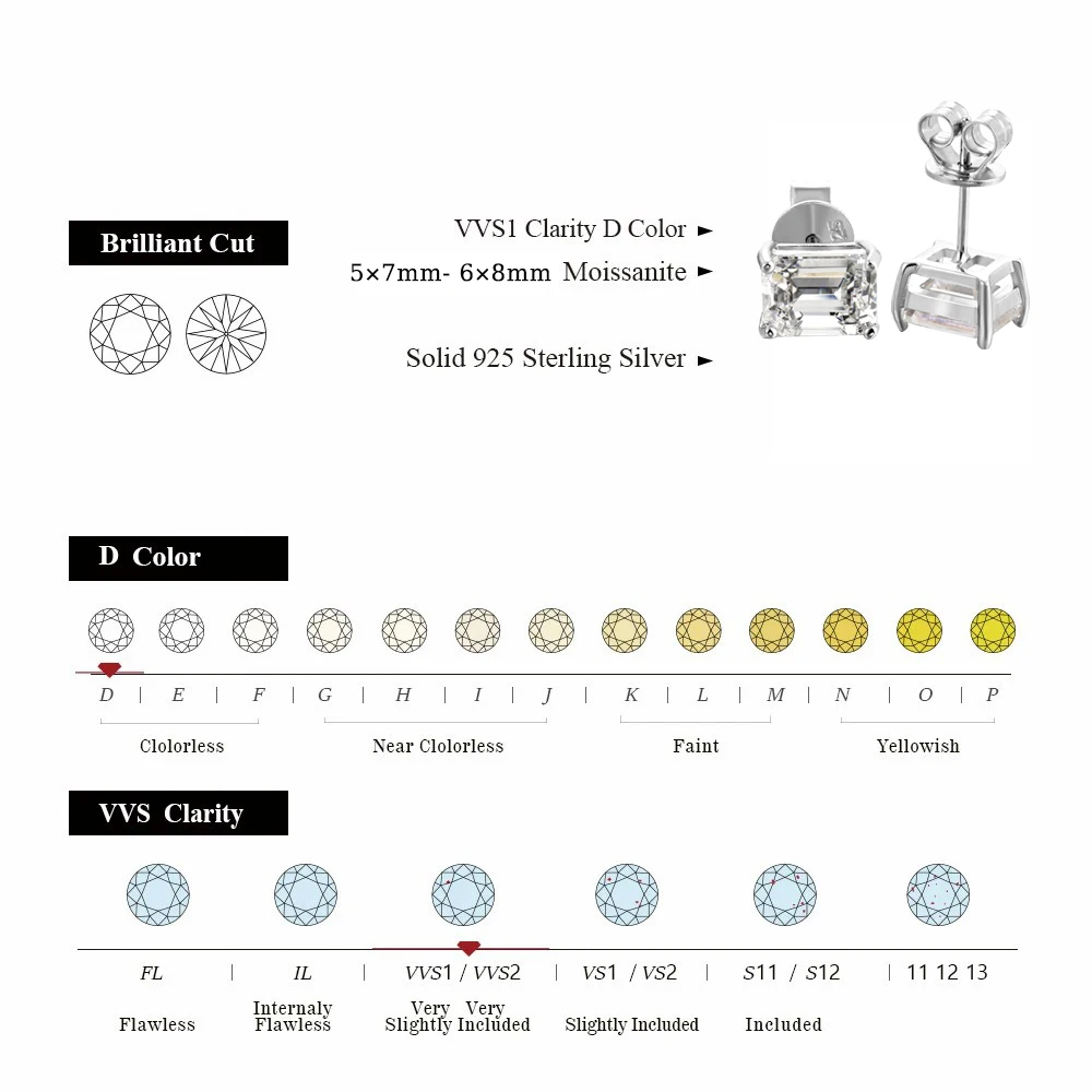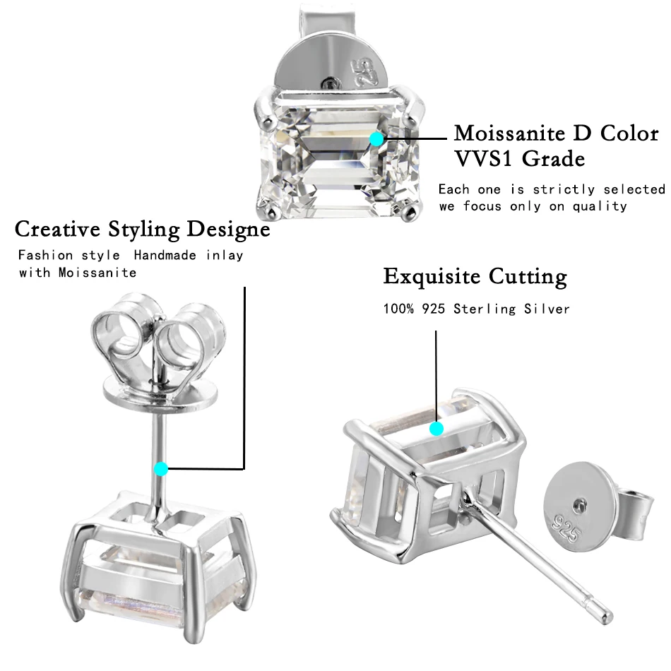 【925 Sterling Silver】Moissanite stud earrings are made of high quanlity material 18k white gold plated 925 sterling silver. All metals are lead-free, nickel-free and hypoallergenic. These diamond stud earrings are lightweight, safe and comfortable to wear and suitable for sensitive ears.