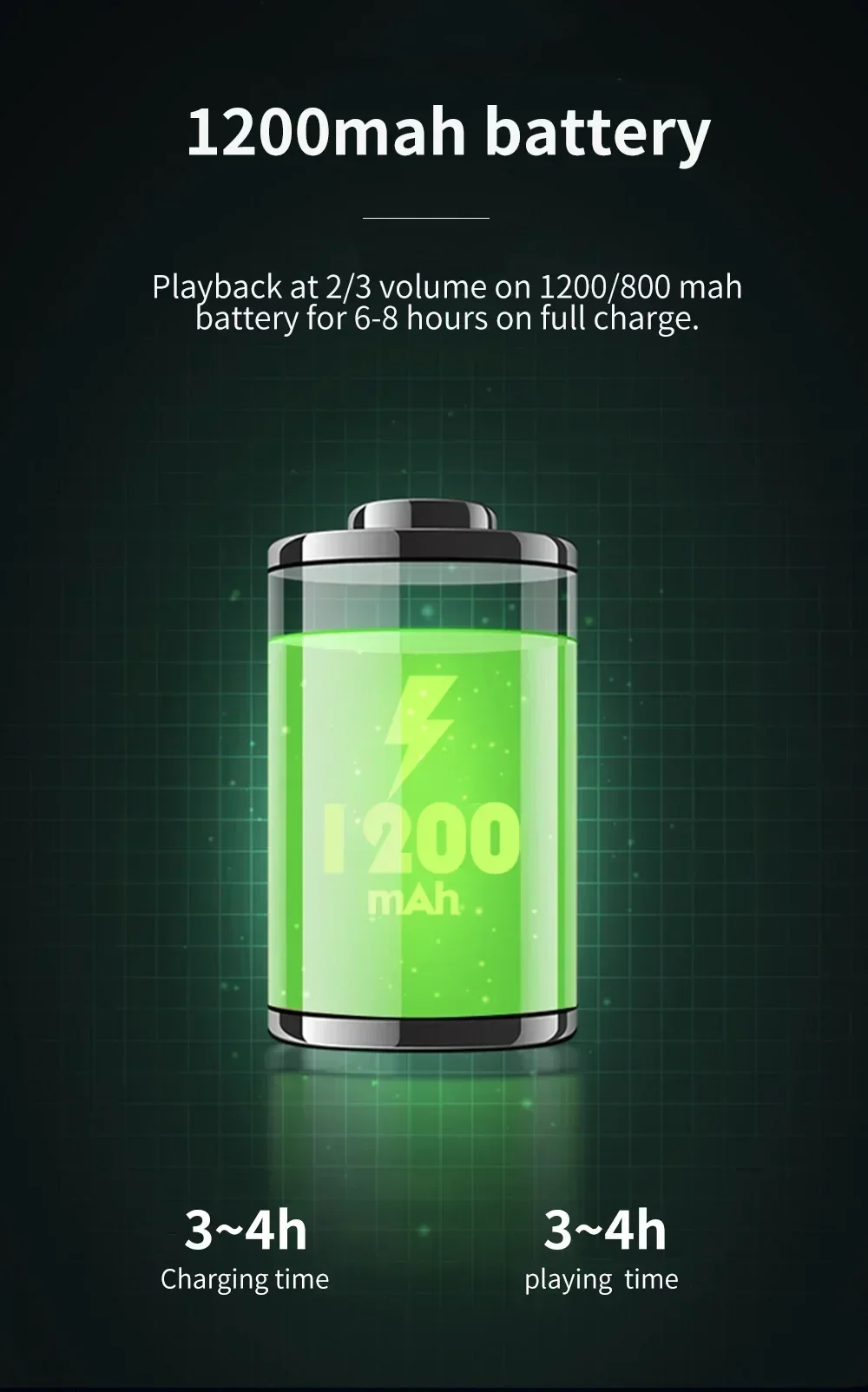 ●Normal volume playing time:3-8H