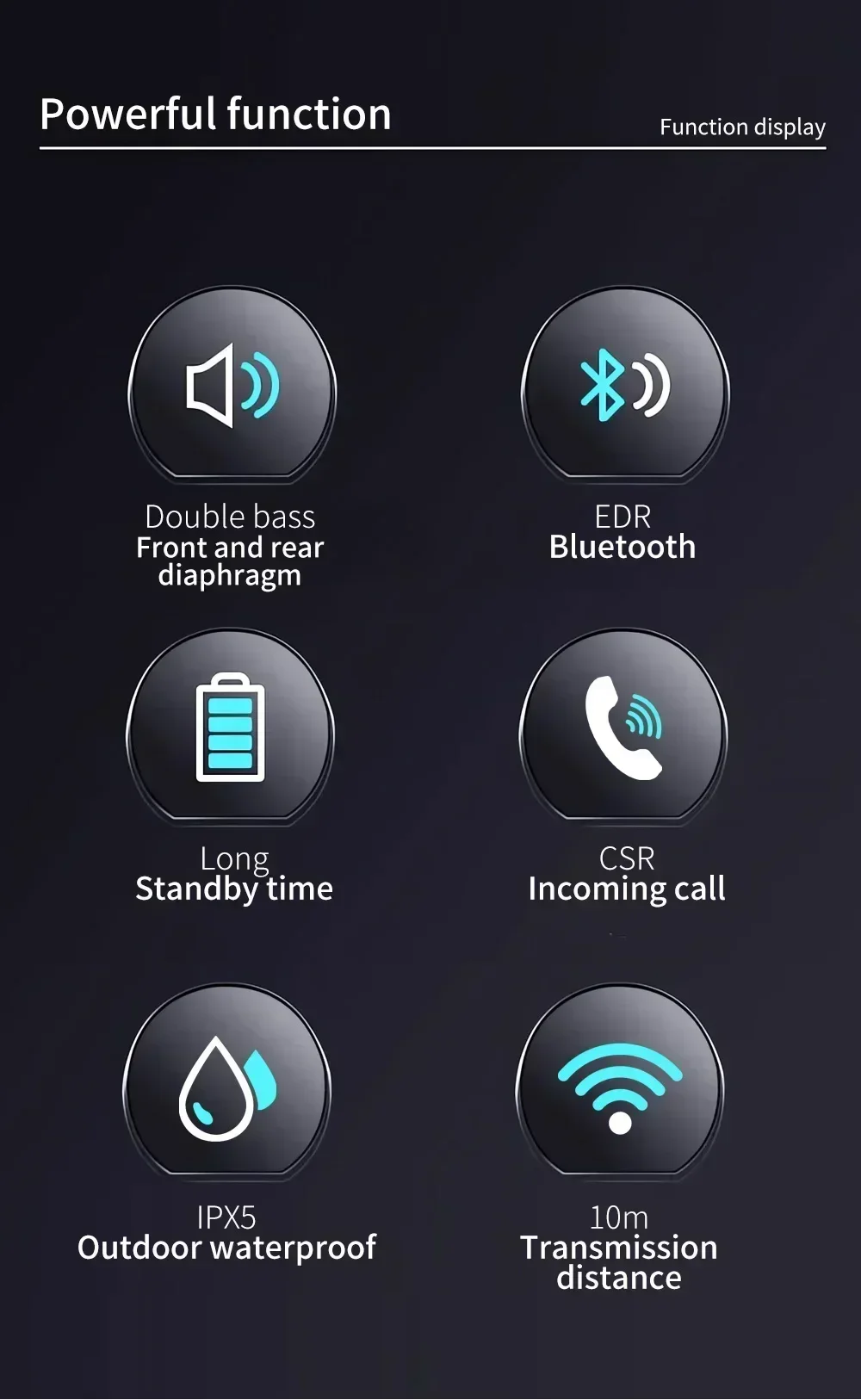 5.When play music, Press short for last song, long press to turn down the volume.