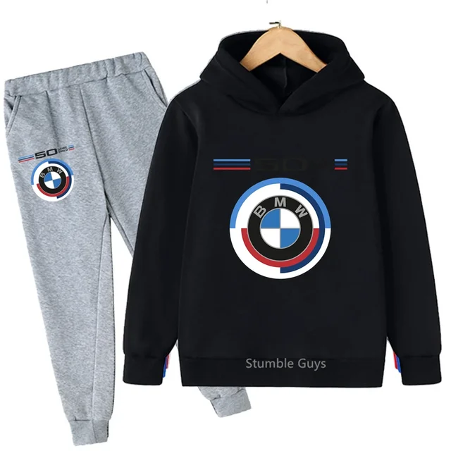 BMW Kids Hoodie Set Autumn Winter Boys Clothe Girls Warm Casual Sweatshirt Trucksuit Cool Street Fashion