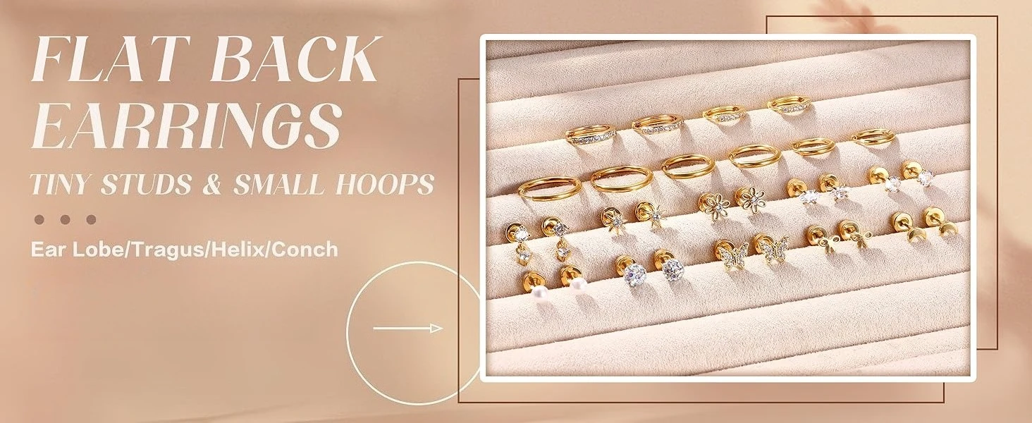 Be the first to review “Bobisty 1 Pair 14K Gold Plated Flat Back Stud Hoops Earrings for Women Men CZ Stainless Steel Cute Cartilage”