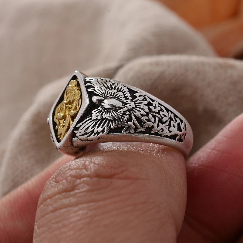 Vnox Dragon Scales Textured Signet Ring for Men,Round Tiger Eye Stone Top Finger Band,Black Gemstone Stainless Steel Stamp Ring