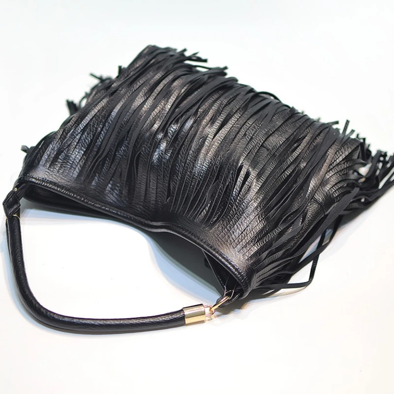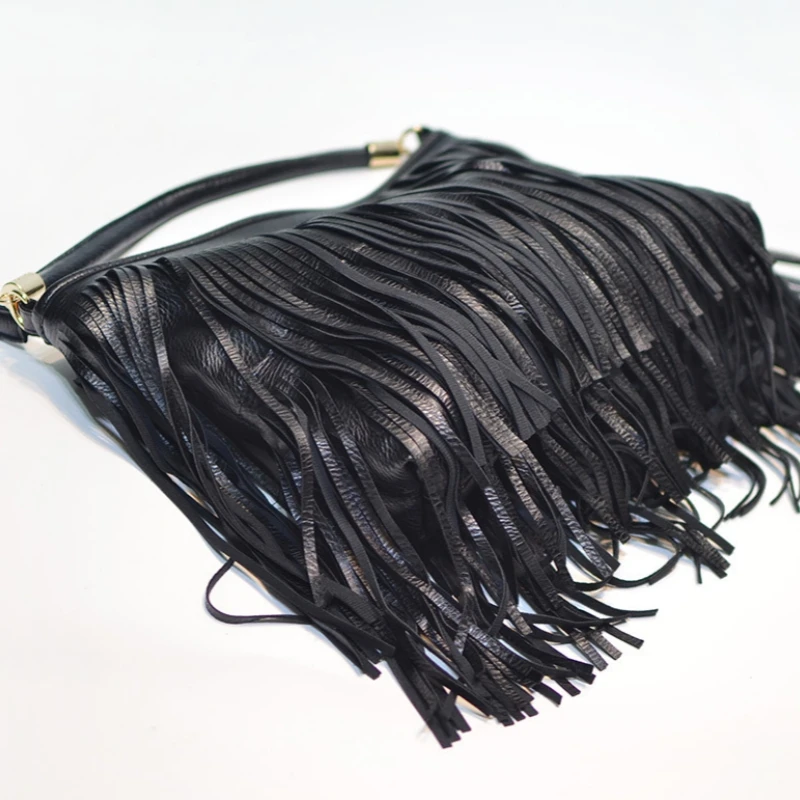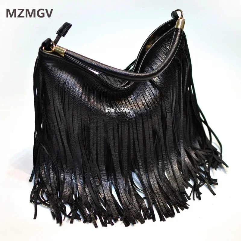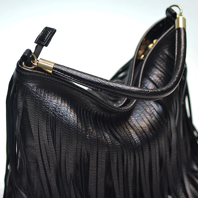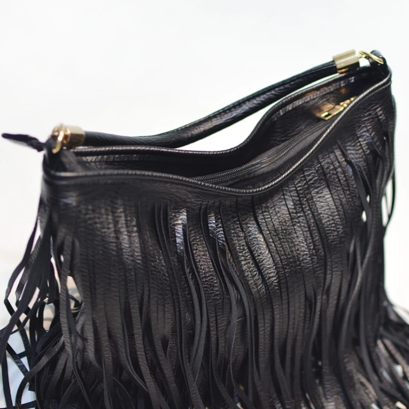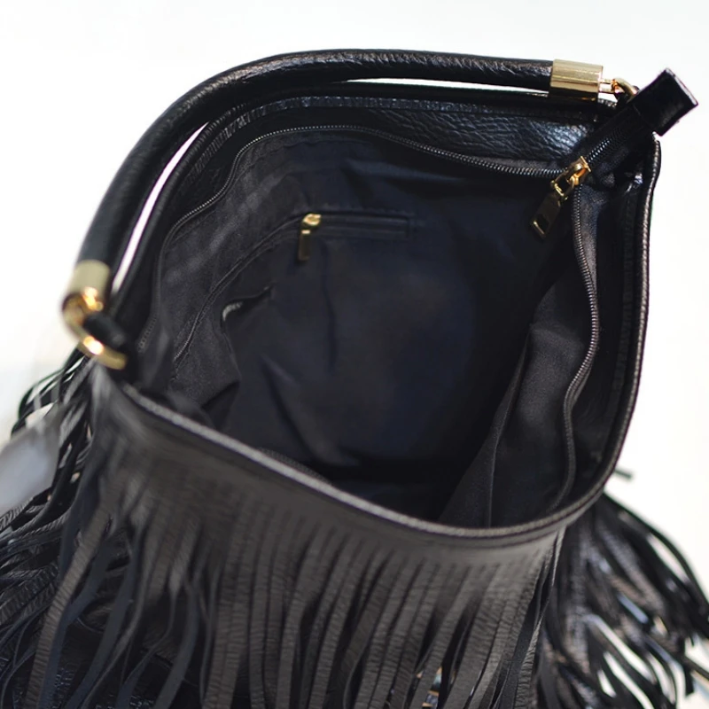 Boho Style Tassels Crossbody Bag for Women 2025 Large Capacity Casual Fringes Shoulder Bag  Zipper Large Capacity Soft Leather