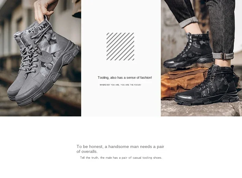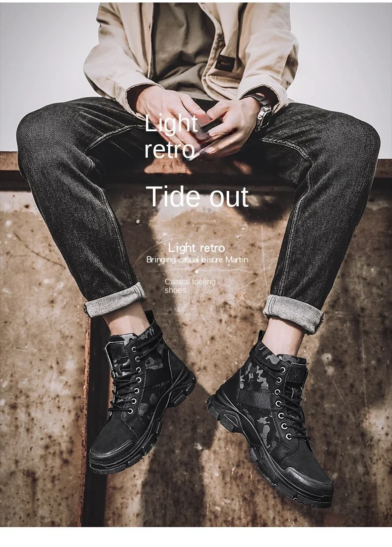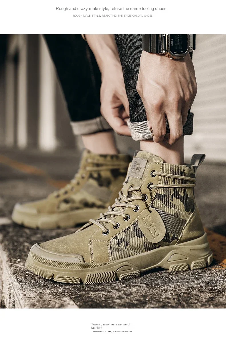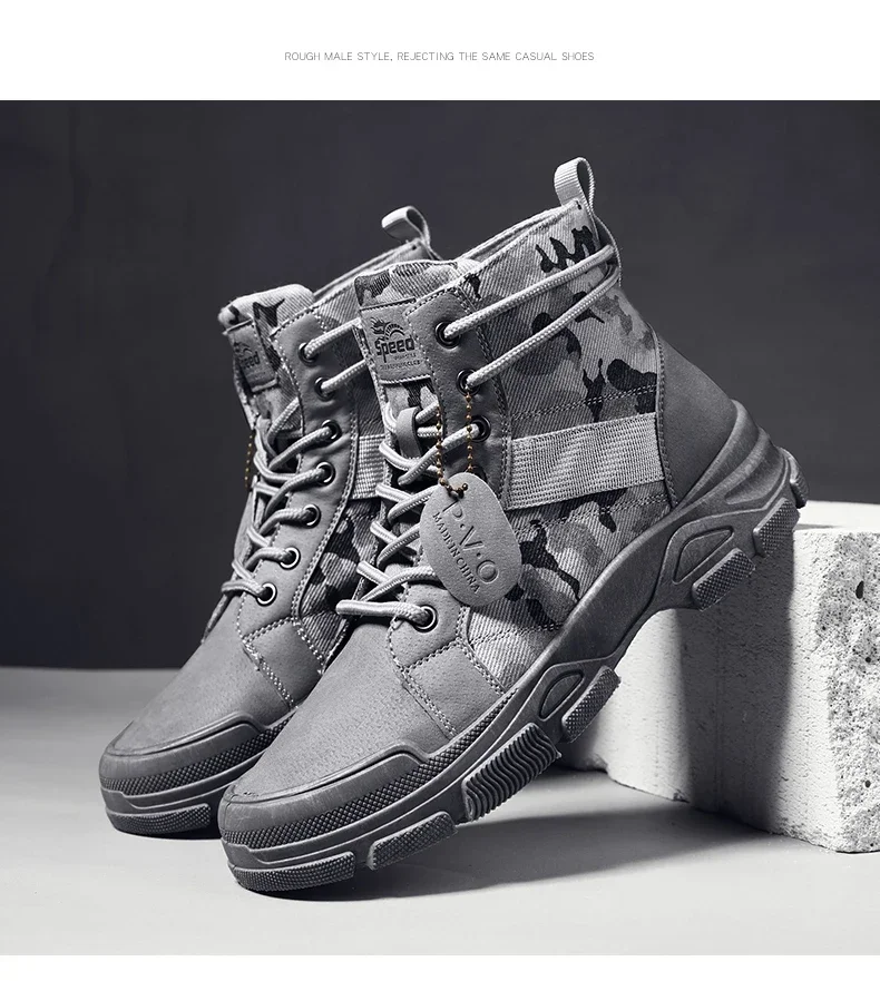 Boots For Men Autumn High Top Camouflage Desert Casual Flats Mens Boot Breathable Non Slip Work Shoes Zapatillas Hombre