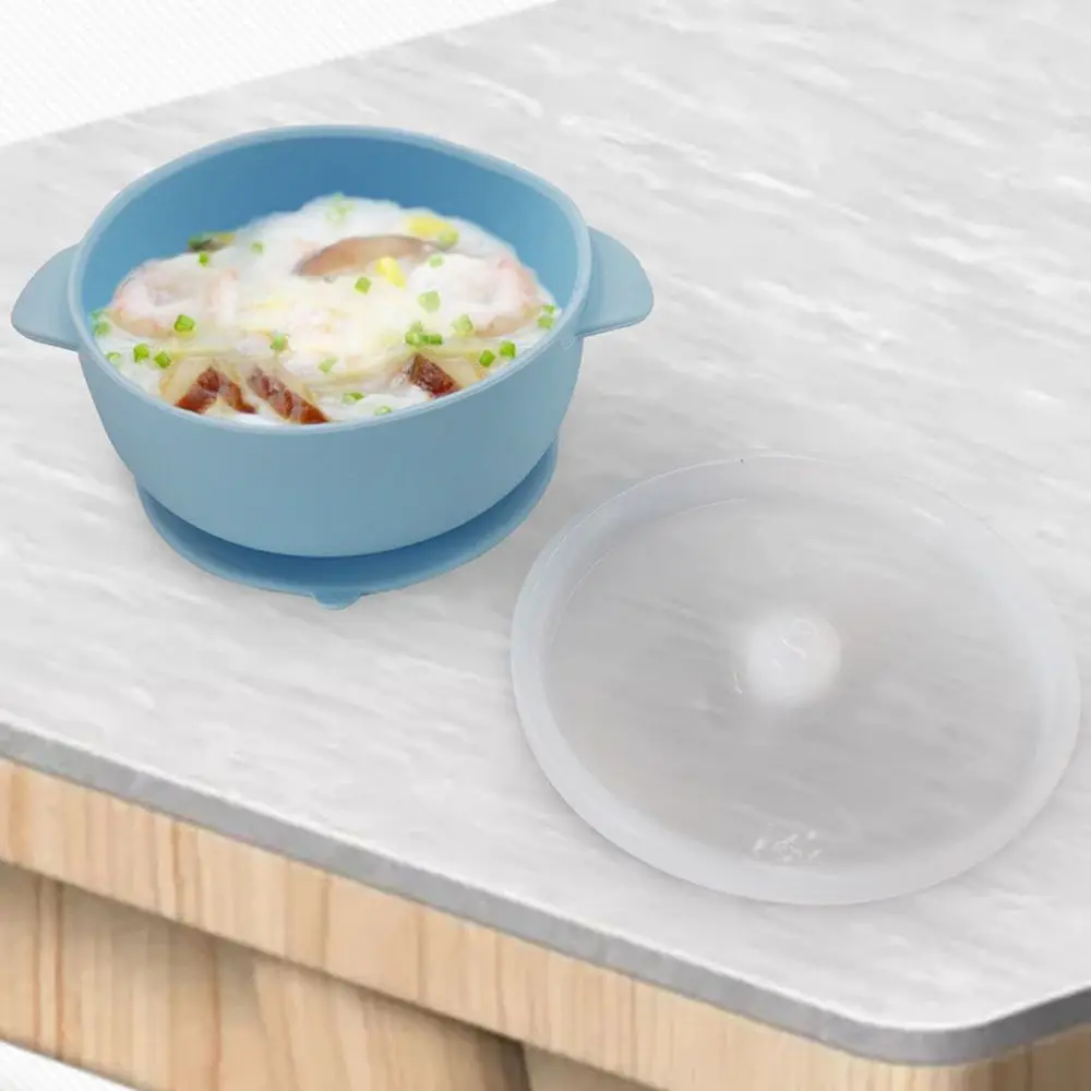 Bowl Lid Spoon Set Baby Suction Dinner Bowl Durable Waterproof Baby Silicone Suction Plate Non-Slip 400ML Feeding Tableware