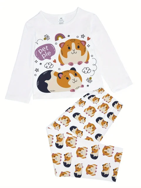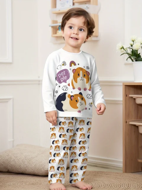 Boys And Girls Spring Autumn Winter Two Piece Set Long Sleeve Top With Trousers Hamster Pattern Design