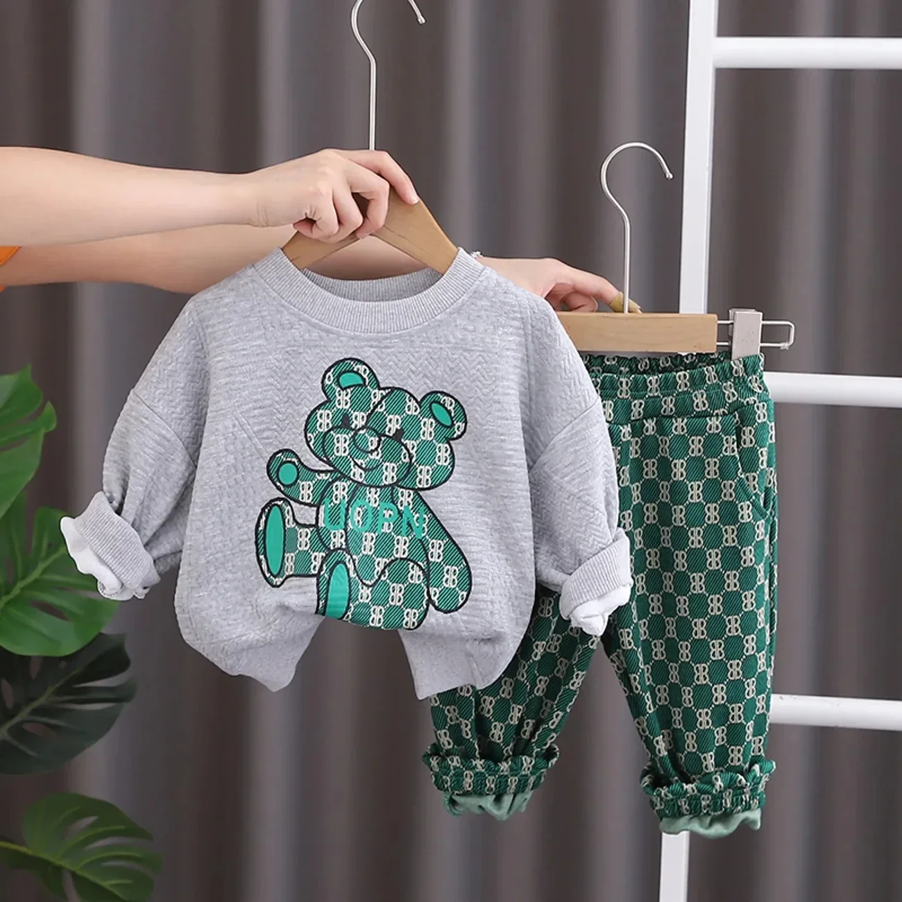 Boys’ Autumn Suit New Handsome Children’s Baby Sweater Pants 2-Piece Toddler Clothing Set