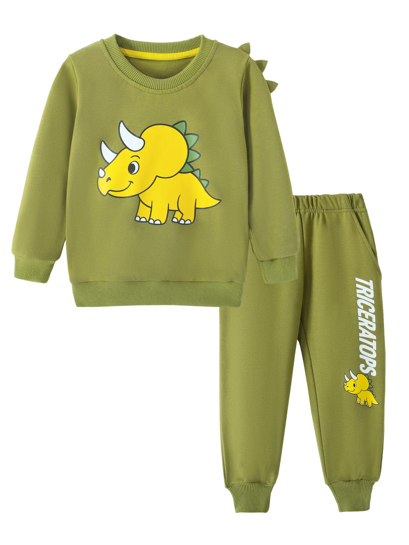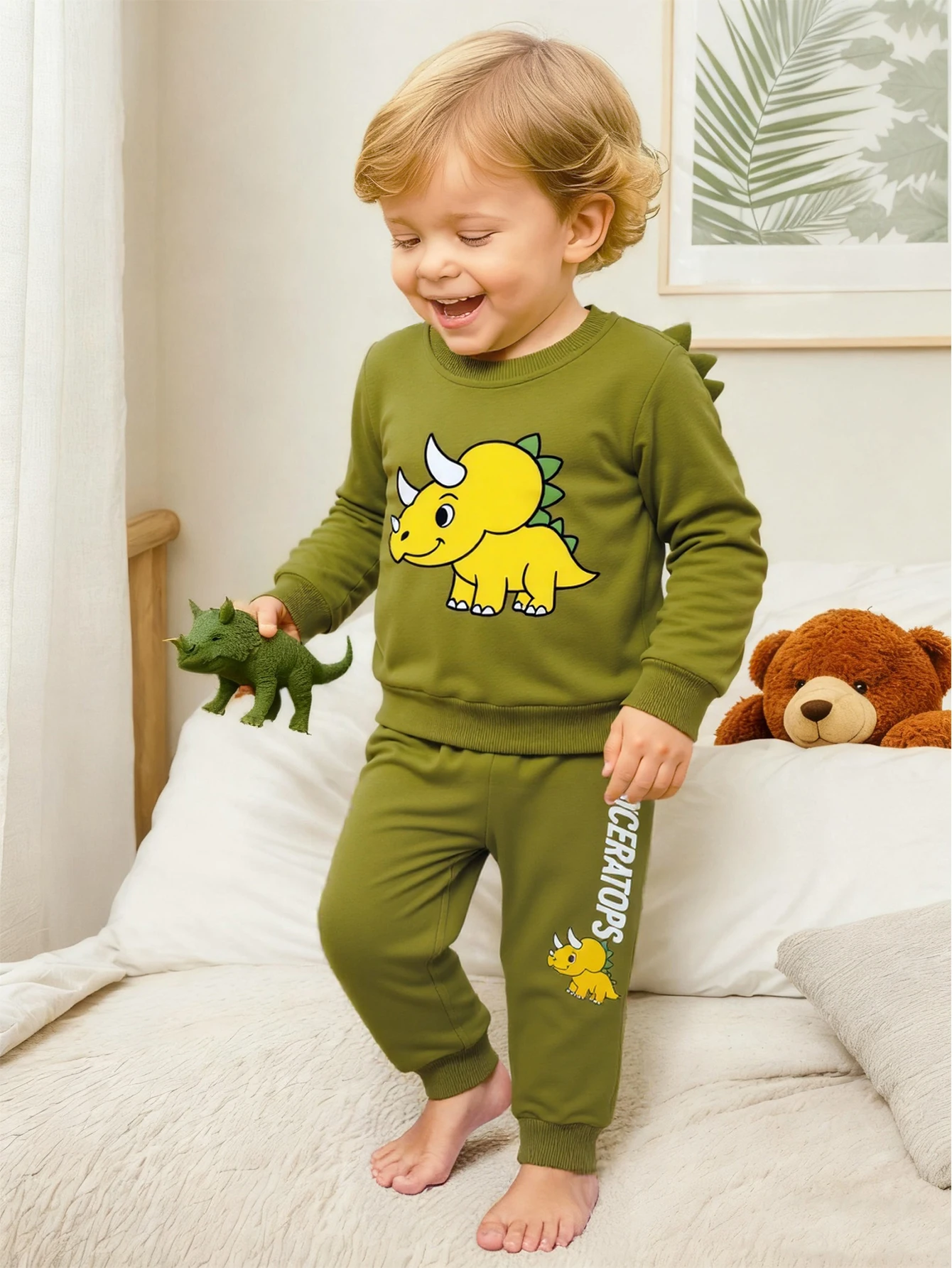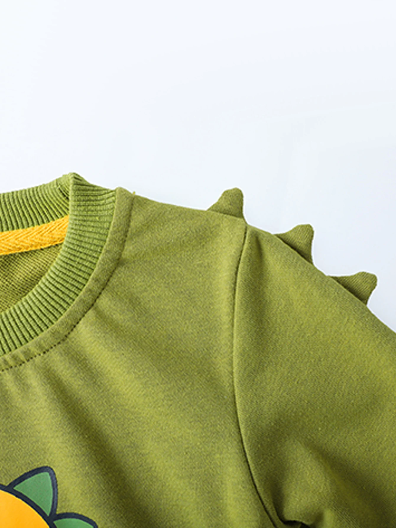 Boys’ long-sleeved sweater and pants set, round-neck, pure cotton, domineering dinosaur design,