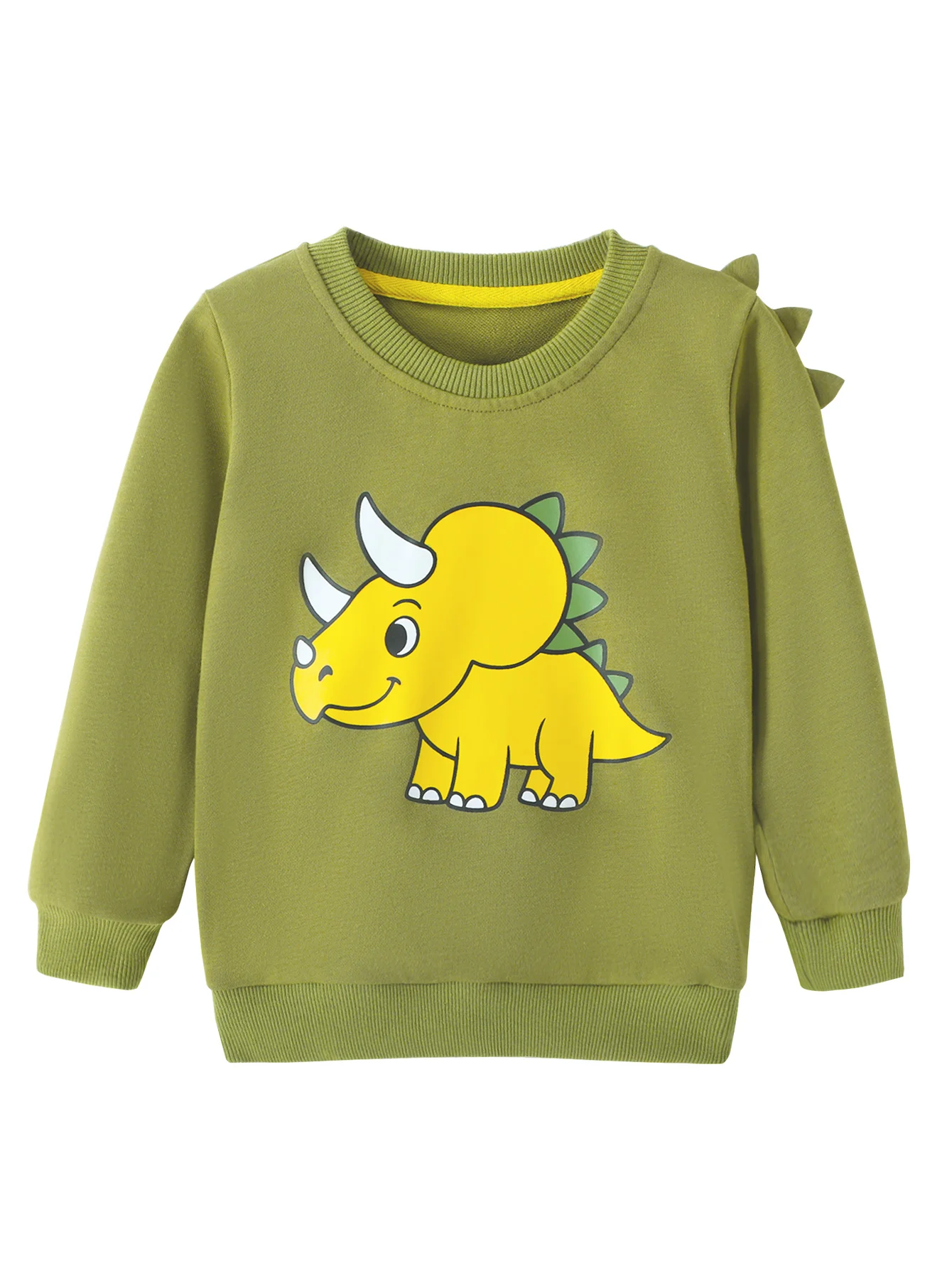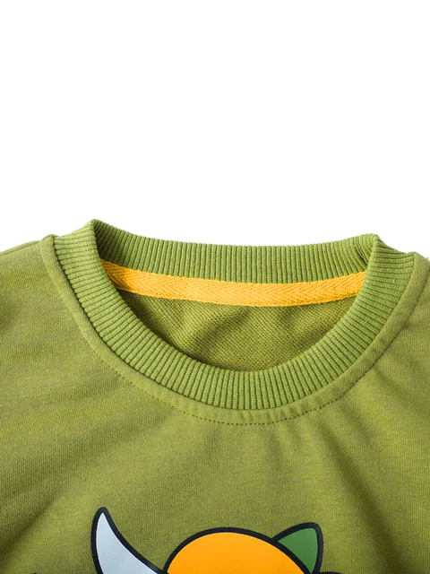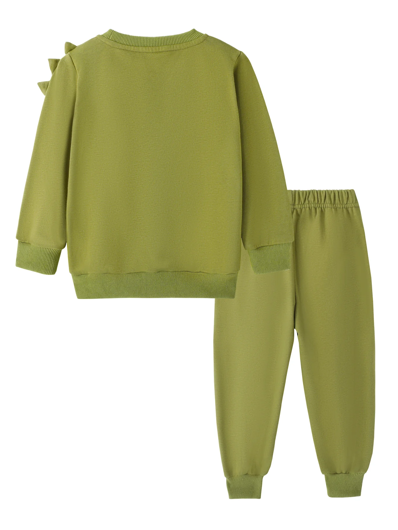 Boys’ long-sleeved sweater and pants set, round-neck, pure cotton, domineering dinosaur design,
