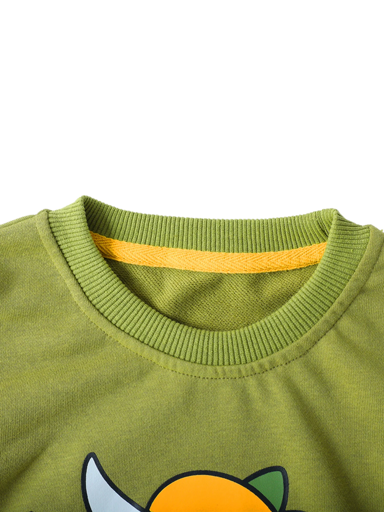Boys' long-sleeved sweater and pants set, round-neck, pure cotton, domineering dinosaur design, casual pullover sweater set