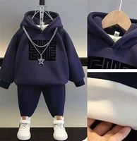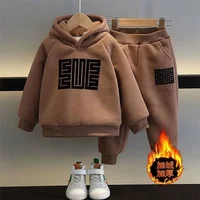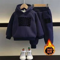 Boys Thickened Sets Children Padded Warm Hoodies Suit Kids Winter Fashion Sweatshirts+Sports Pants 2Pcs