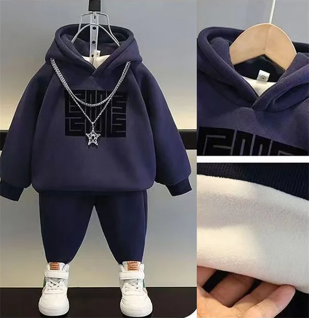 Boys Thickened Sets Children Padded Warm Hoodies Suit Kids Winter Fashion Sweatshirts+Sports Pants 2Pcs Outfits Toddler Clothes