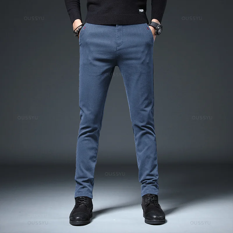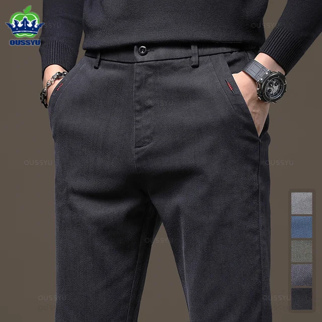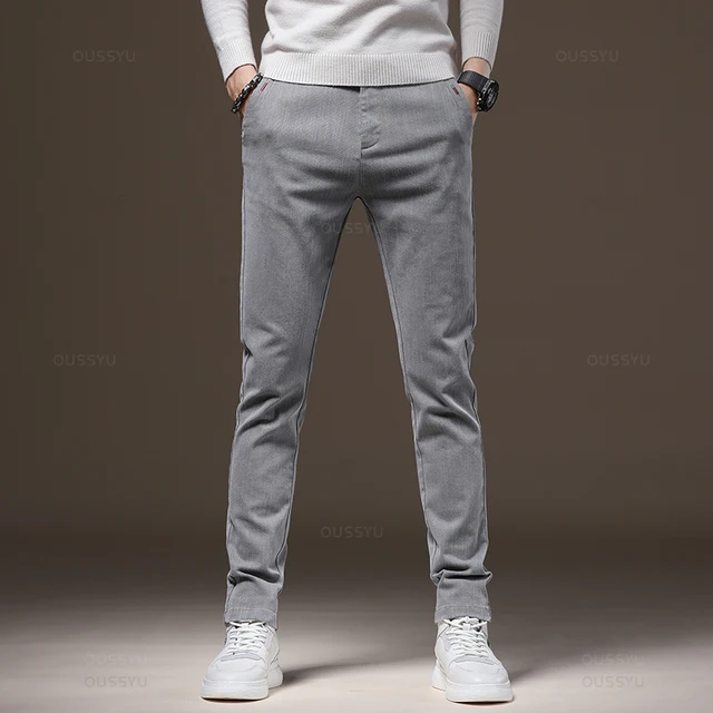 Brand Clothing Autumn Winter Classic Work Stretch Pants Men Cotton Business Slim Fit Grey Black Korea Casual Cargo Trousers Male