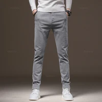Brand Clothing Autumn Winter Classic Work Stretch Pants Men Cotton Business Slim Fit Grey Black Korea