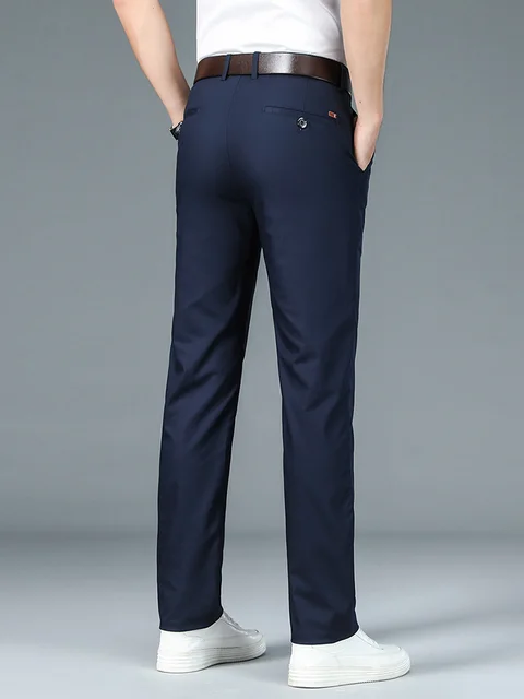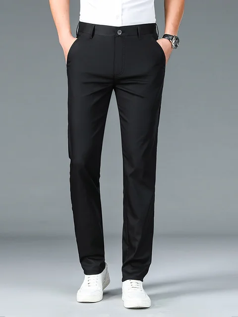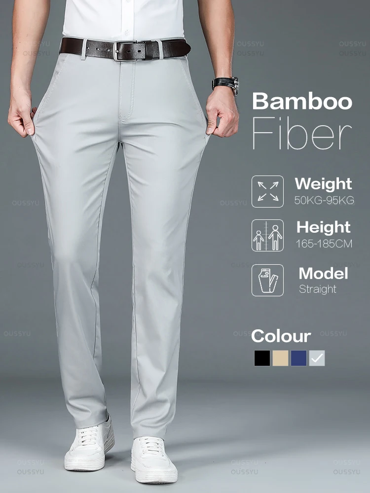 Brand Clothing Luxury Straight Business Suit Pants Men Bamboo Fiber Designer Summer Thin Elegant Casual