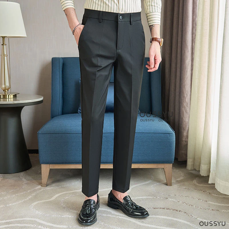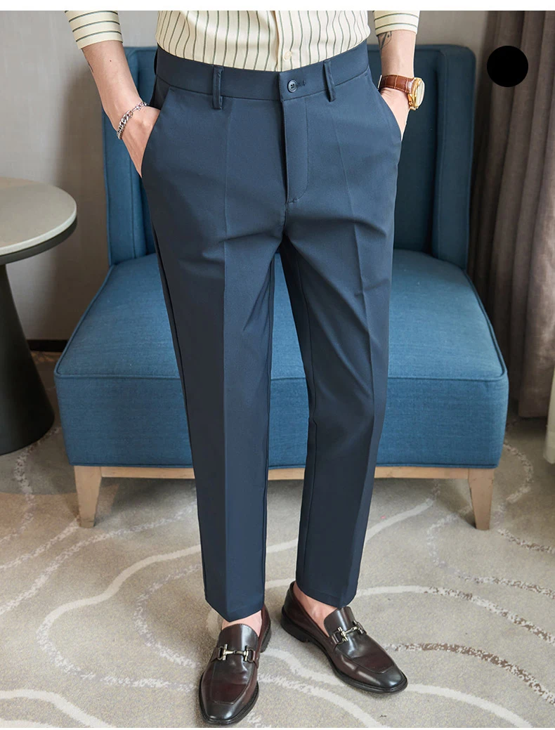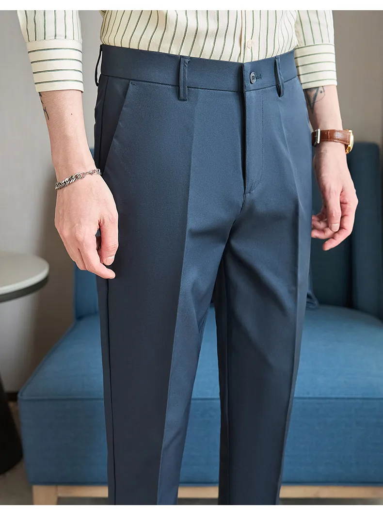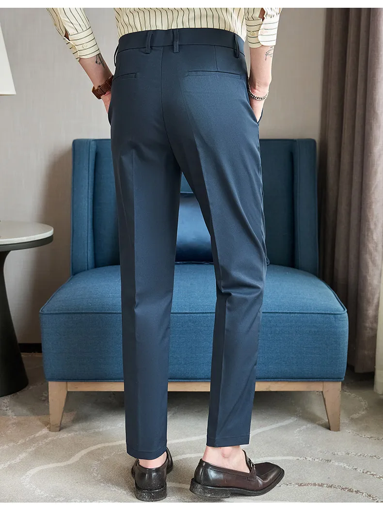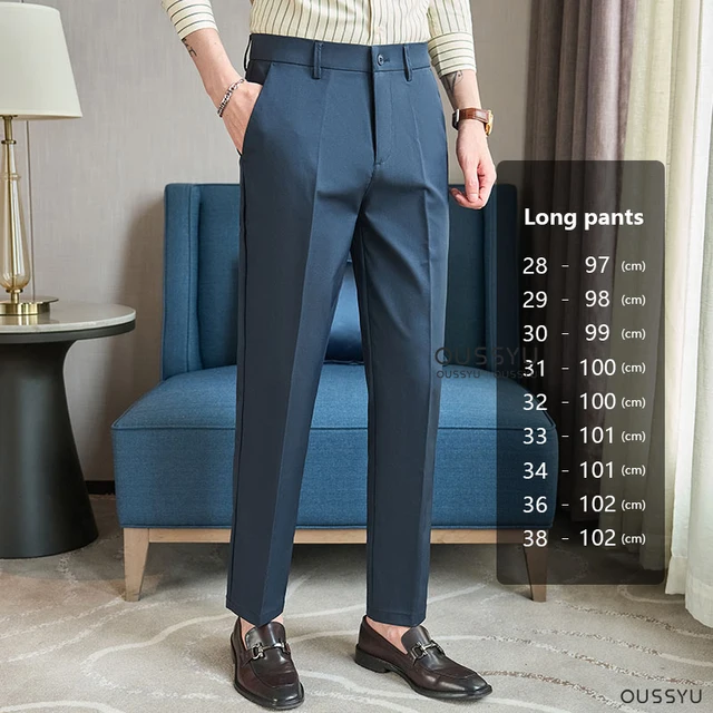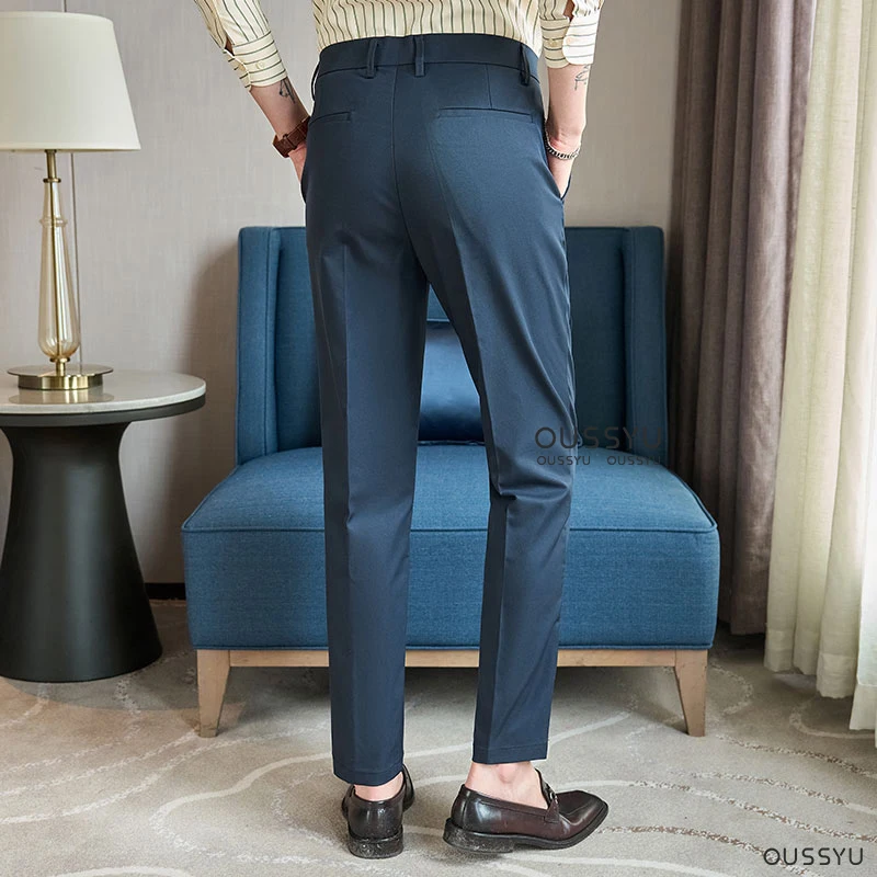 Brand Clothing Spring Summer Formal Ankle Length Pants Men Thin Business Navy Blue Suit Office Work Social Korean Trousers Male
