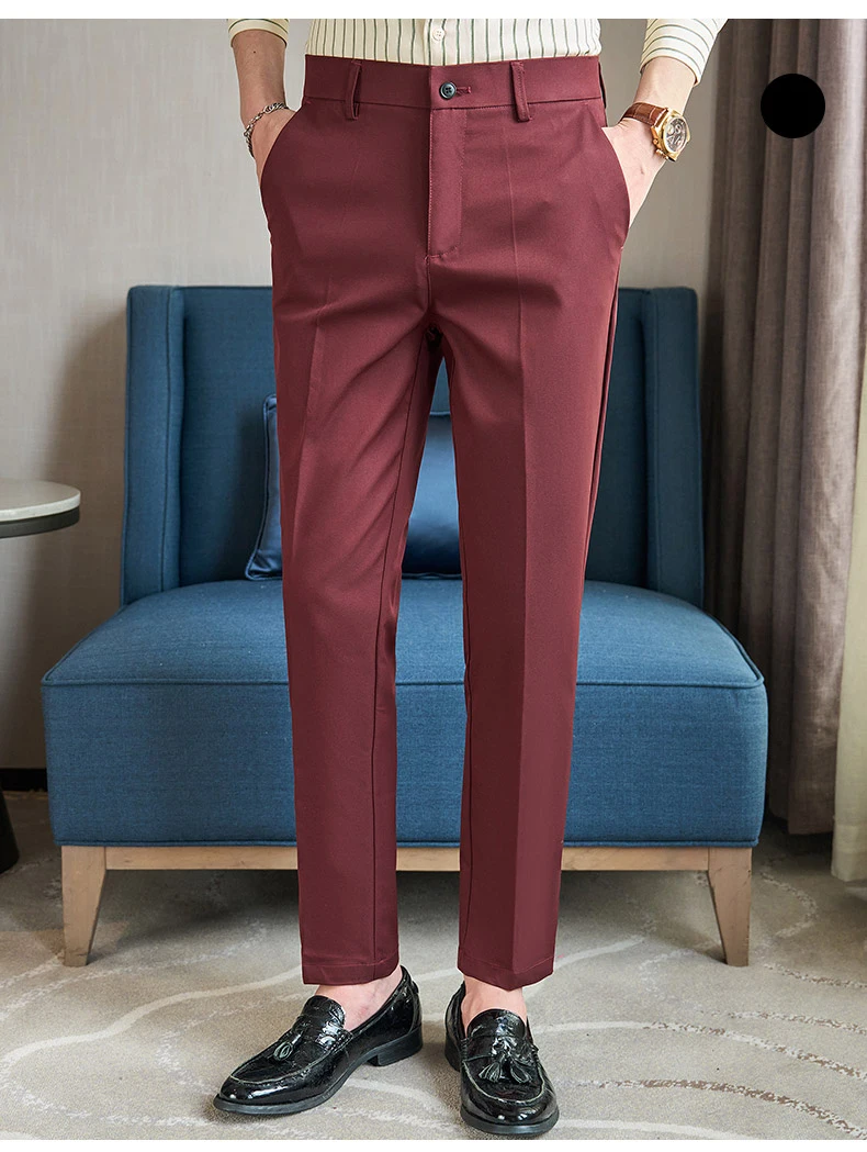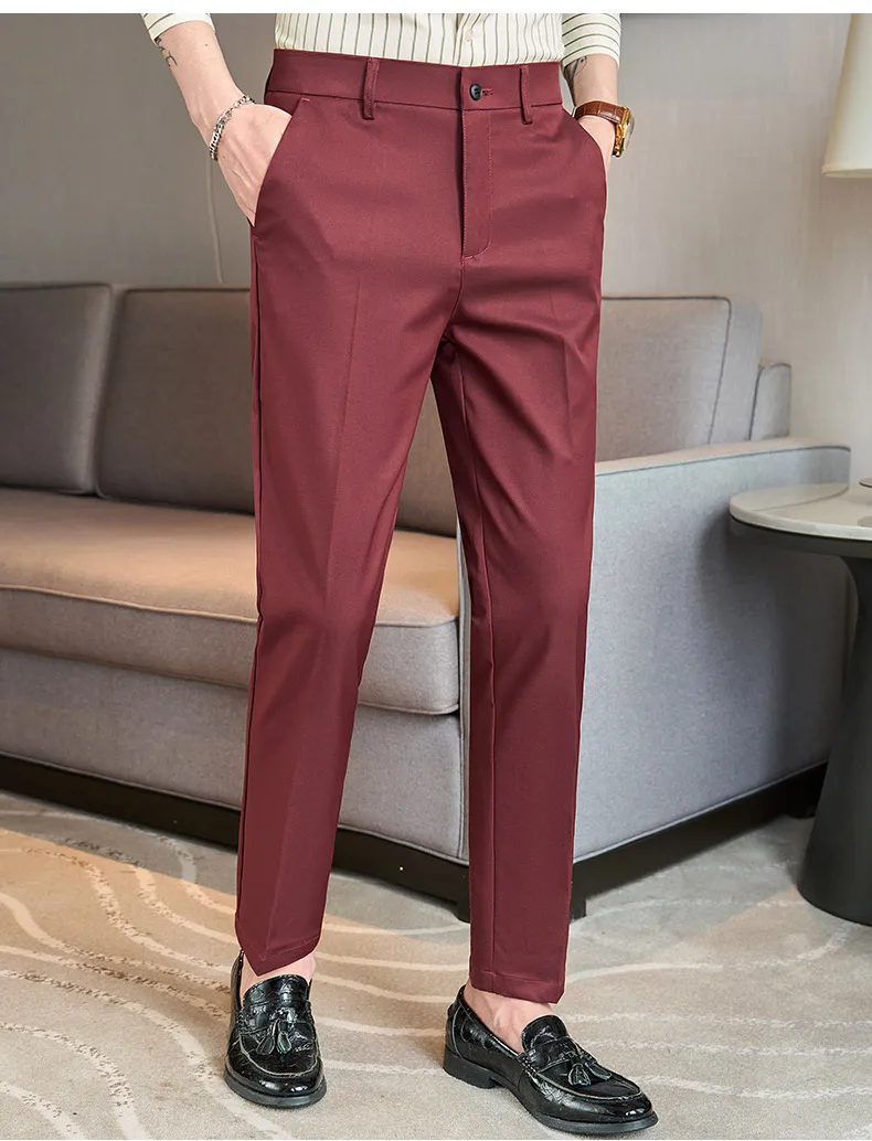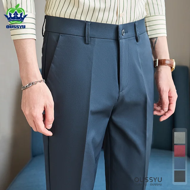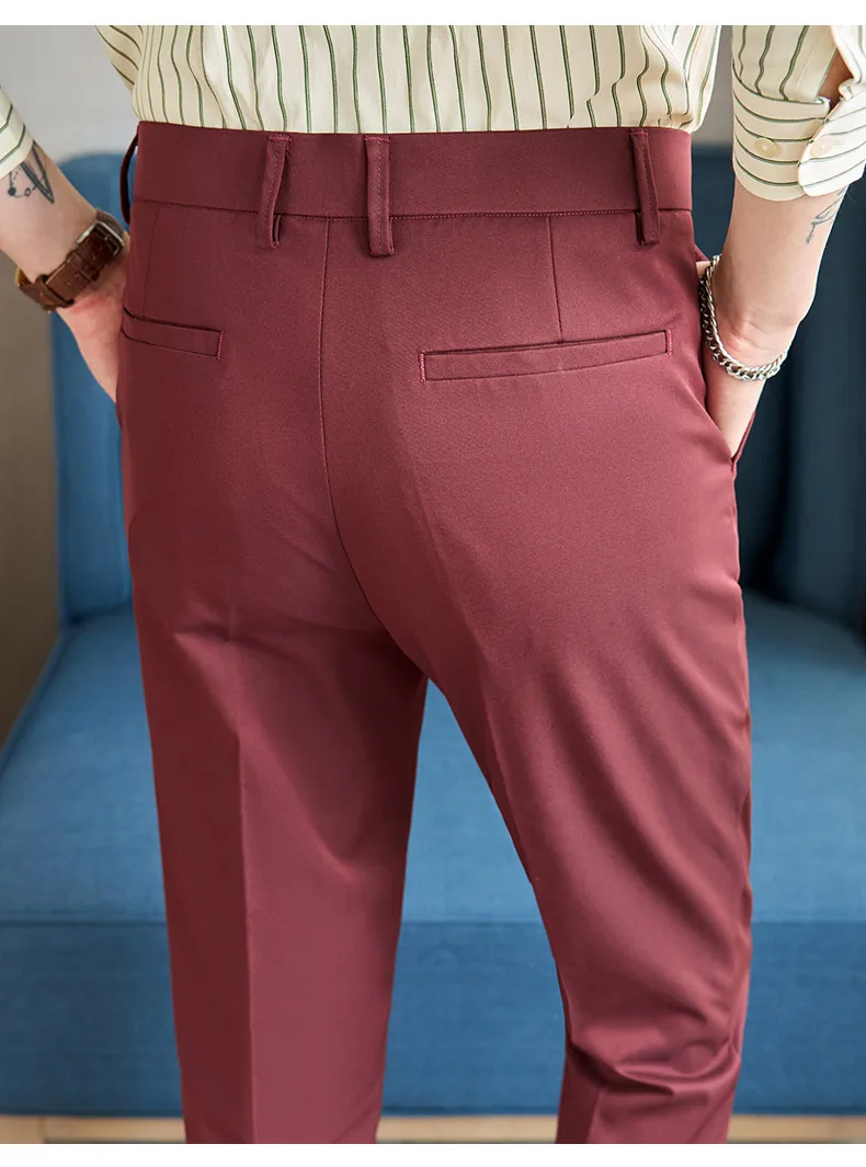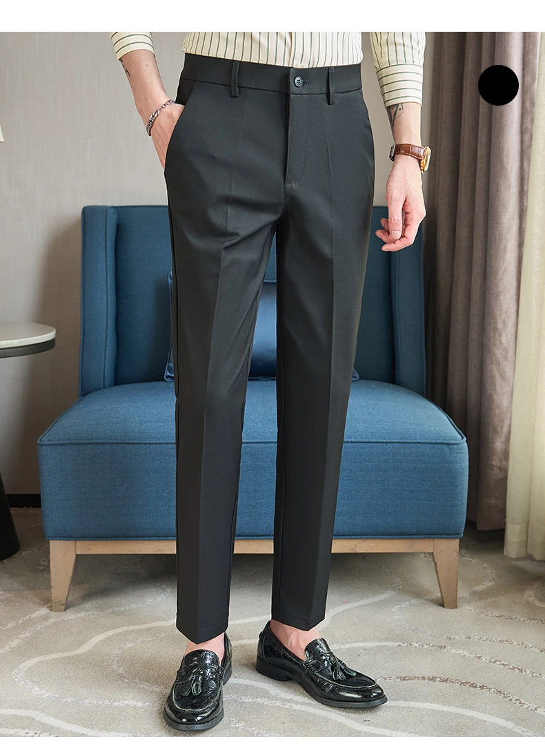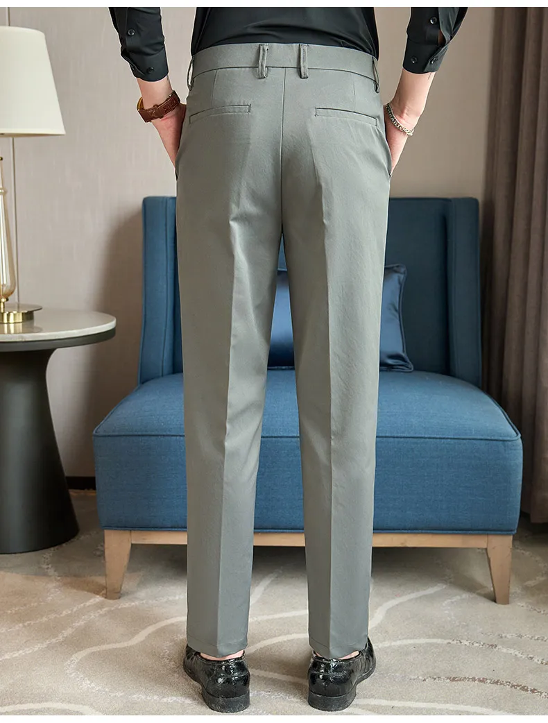 Brand Clothing Spring Summer Formal Ankle Length Pants Men Thin Business Navy Blue Suit Office Work Social Korean Trousers Male