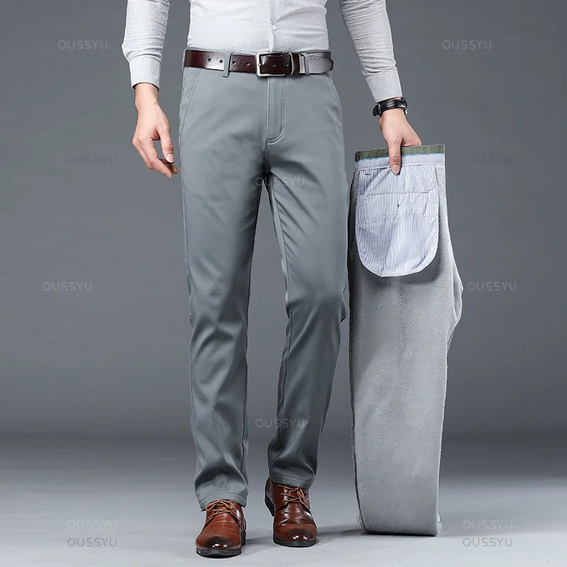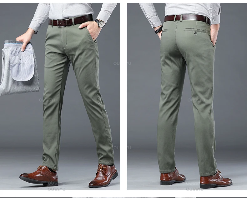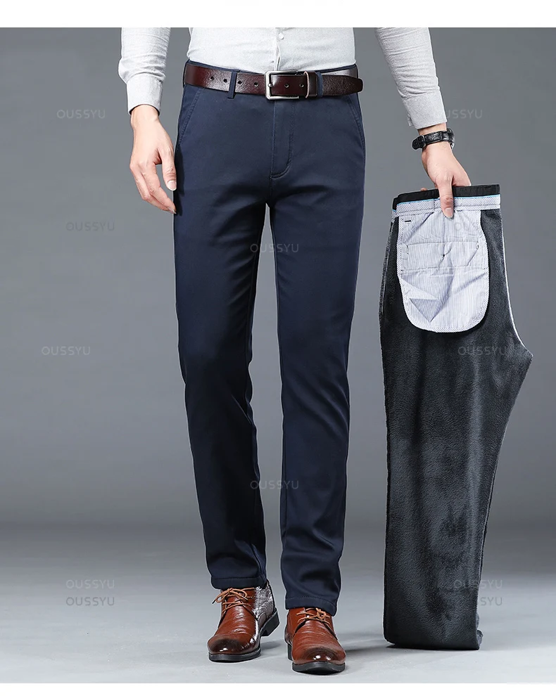 Winter Warm Fleece Army Green Men's Corduroy Pants Thicken Business Small Straight Slim Outdoors Cargo Work Casual Trouser Male