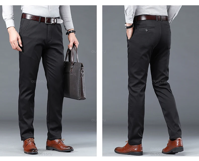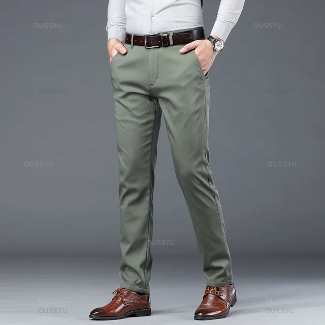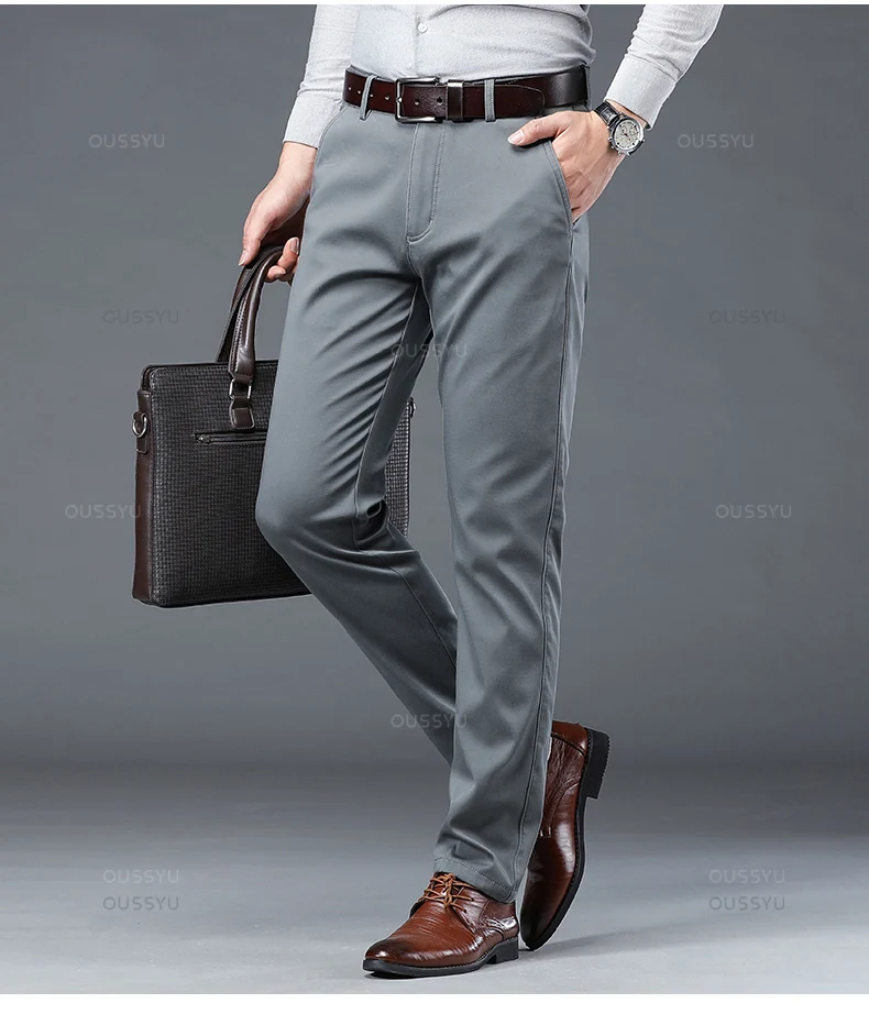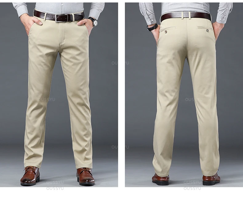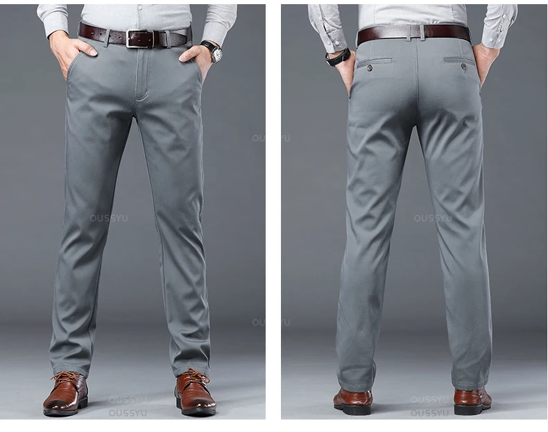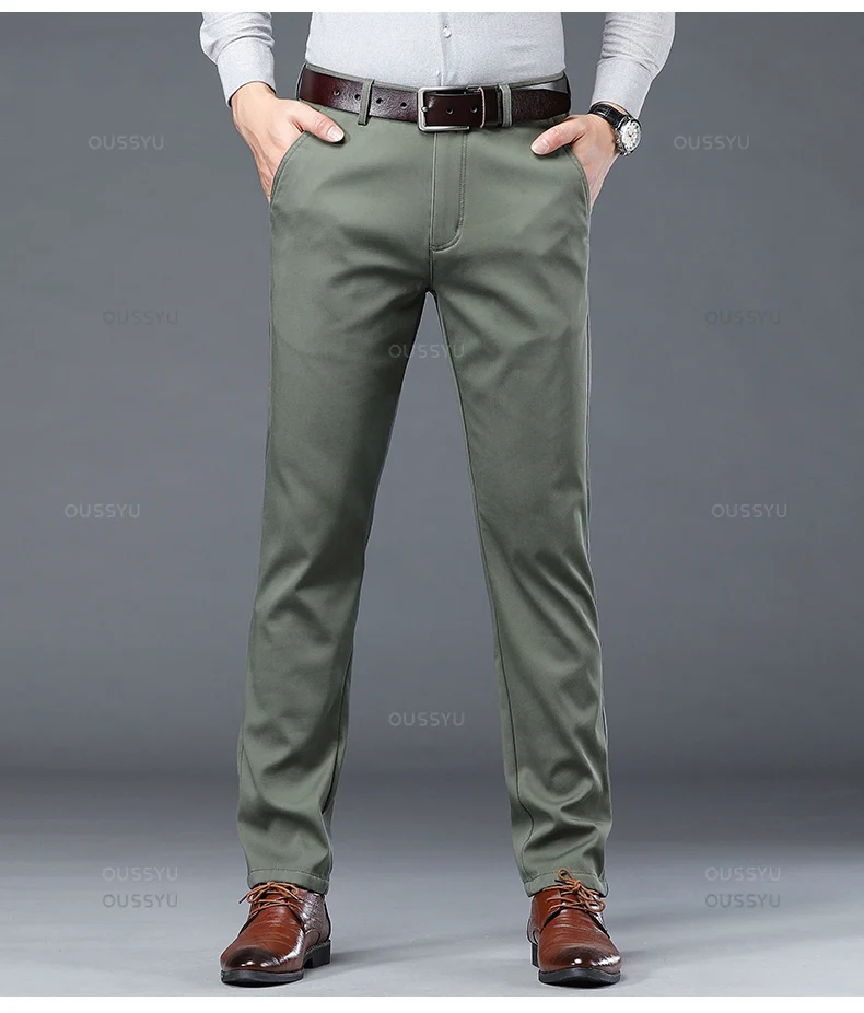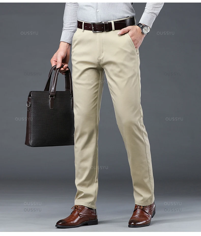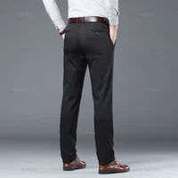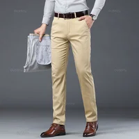 2024 Summer Thin Men's Business Casual Pants Stretch Soft Straight Leg Solid Color Slim Fit Trousers Male Beige Gray Black