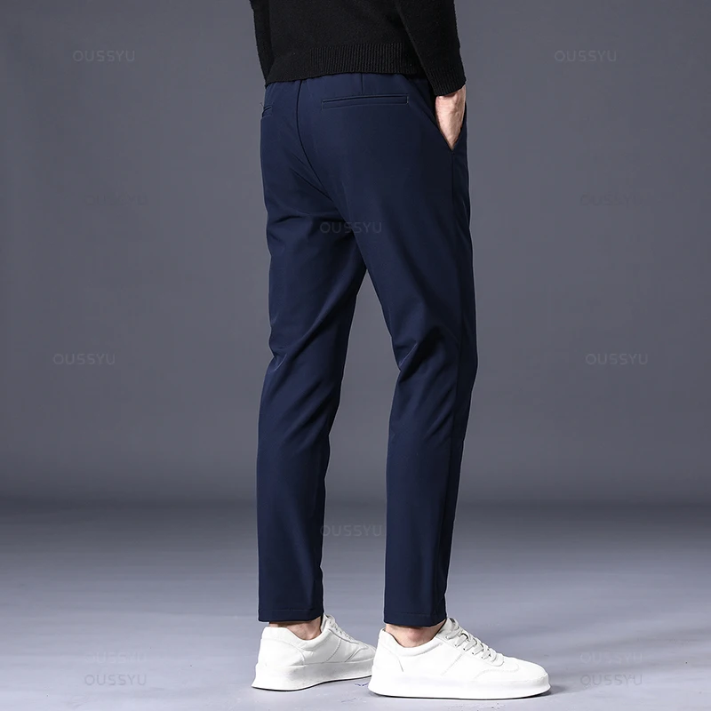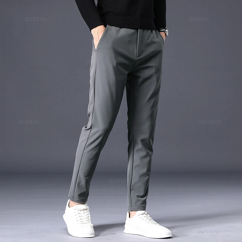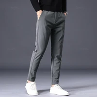 Spring Men's Slim Casual Pants Business Straight Twill Cotton Elastic Trousers Brand Fashion Korean Clothing Coffee Black Gray