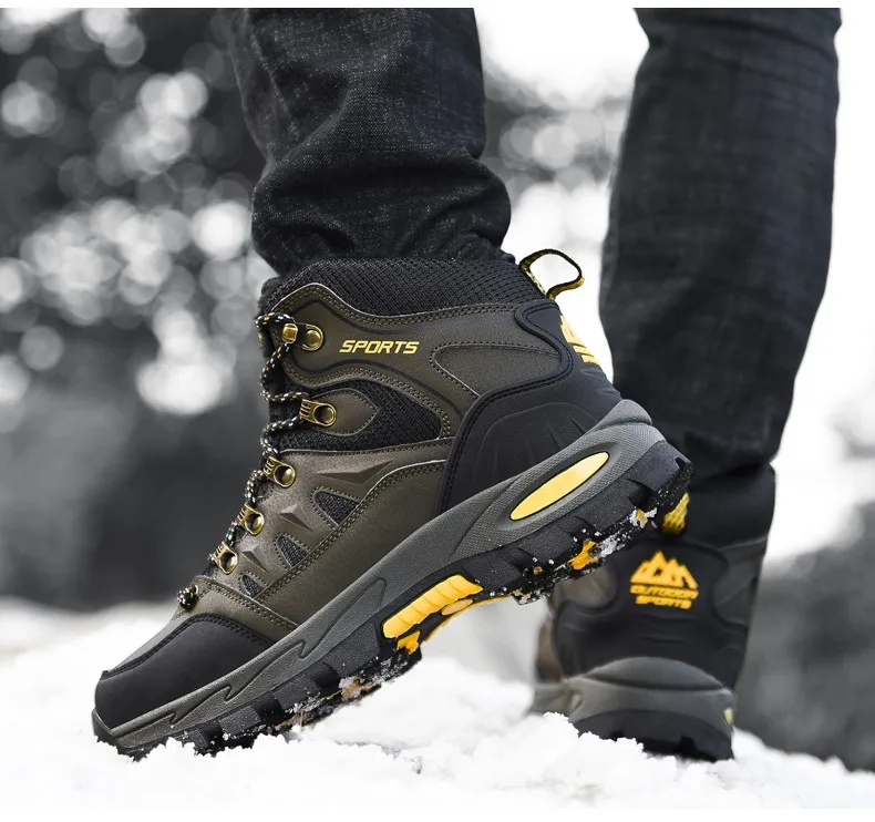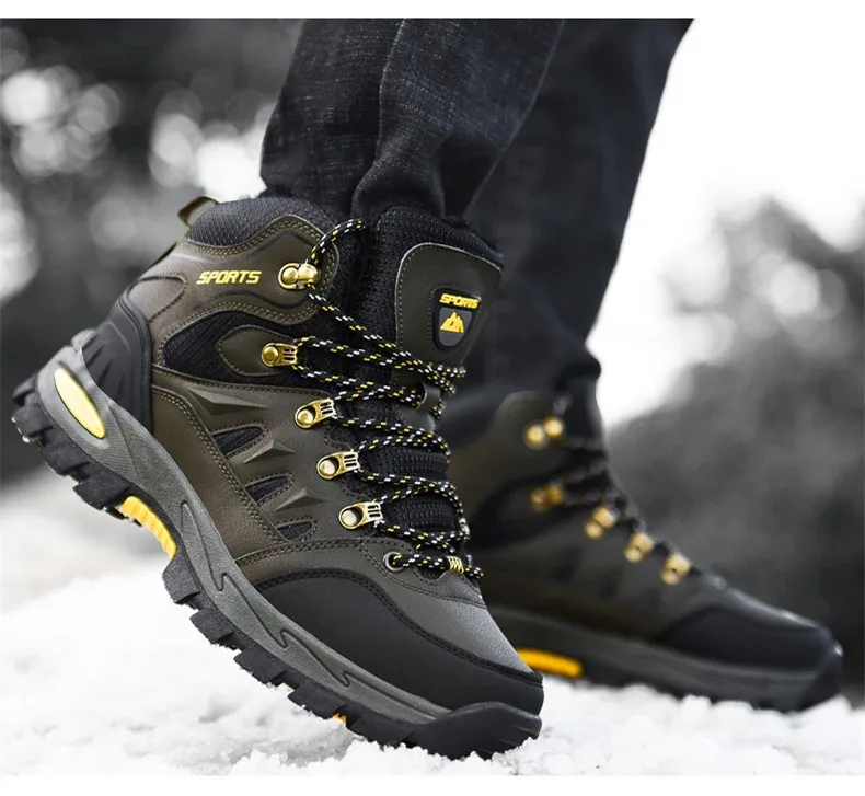 Brand Men's Hiking Boots Autumn Winter Trekking Shoes Waterproof Leather Boots Men Women Outdoor Non-slip Climbing Boots Size 47