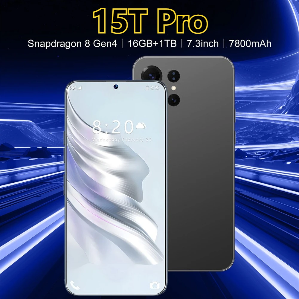Brand New 15T Pro Smartphone 5G 7.3HD Android 15 22G+2TB Dual SIM Card Cell Phone 8000mAh Unlocked Mobile