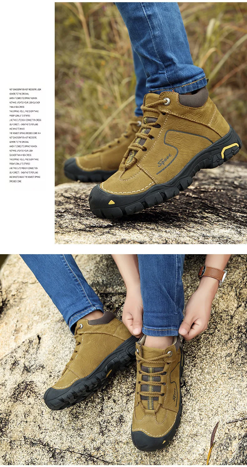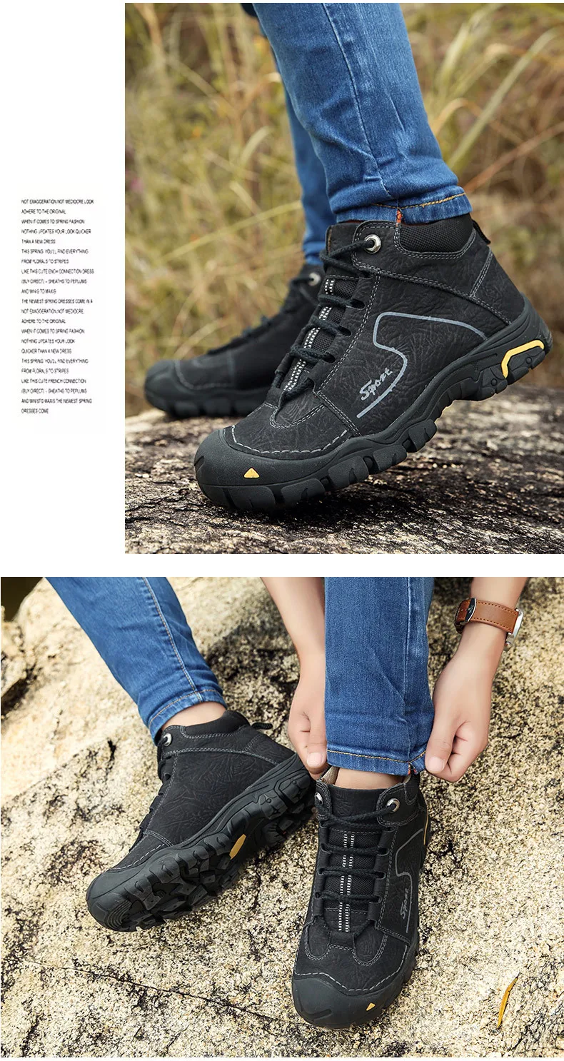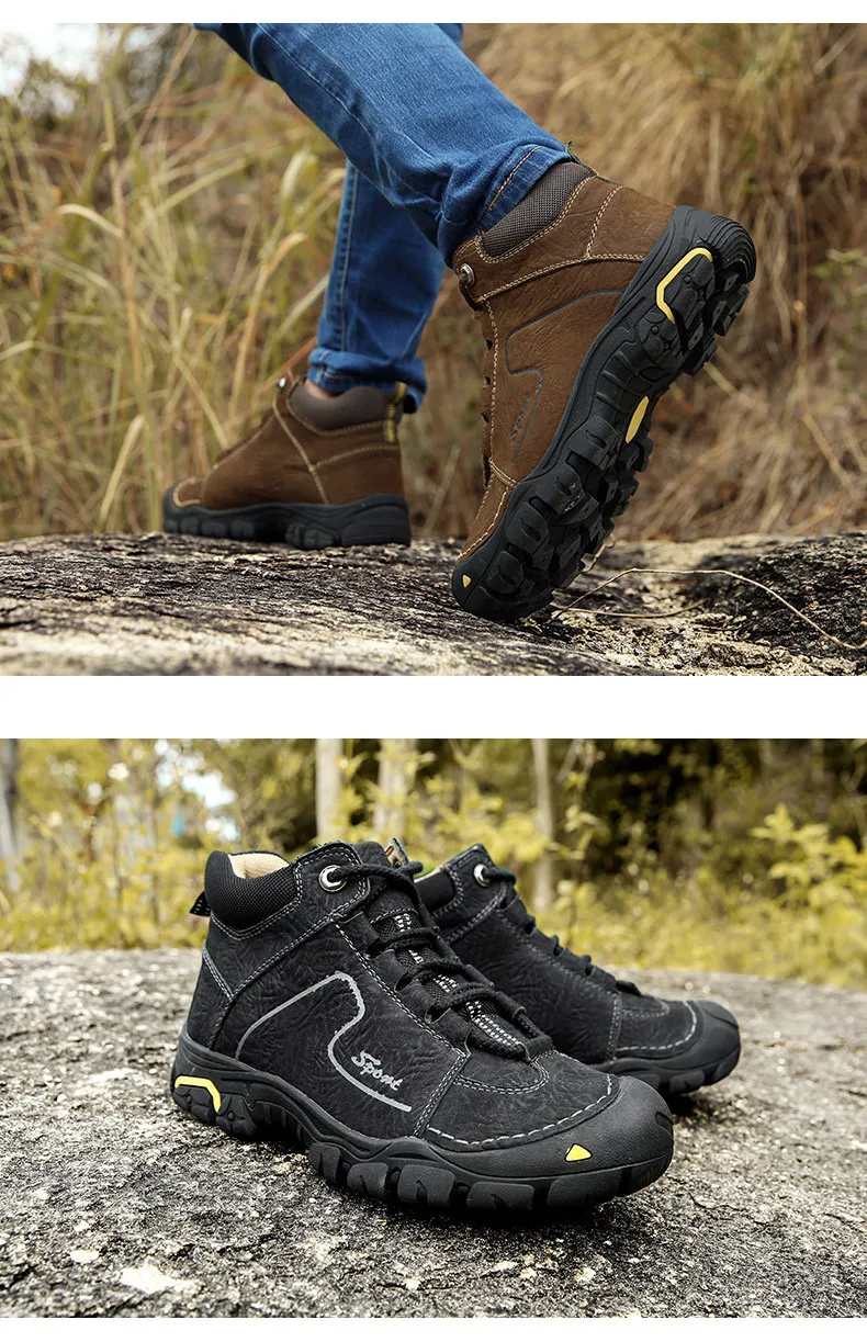 Brand Outdoor Shoes Men Genuine Leather Trekking Hiking Shoes Men Waterproof Hiking Boots Winter Sneakers Mountain Climbing Shoe