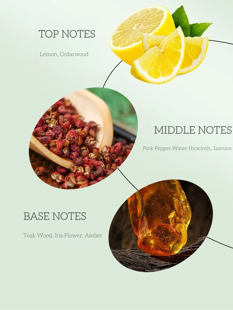 BASE NOTES:Teak Wood, Iris Flower, Amber