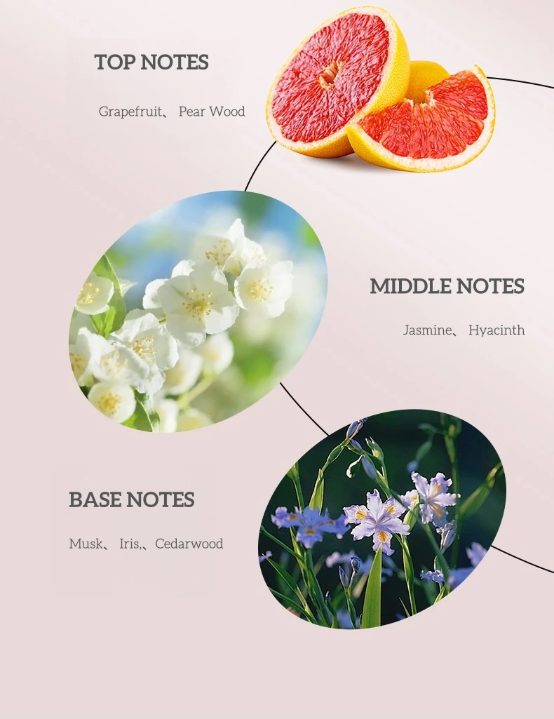MIDDLE NOTES:Pink Pepper,Water Hyacinth, Jasmine