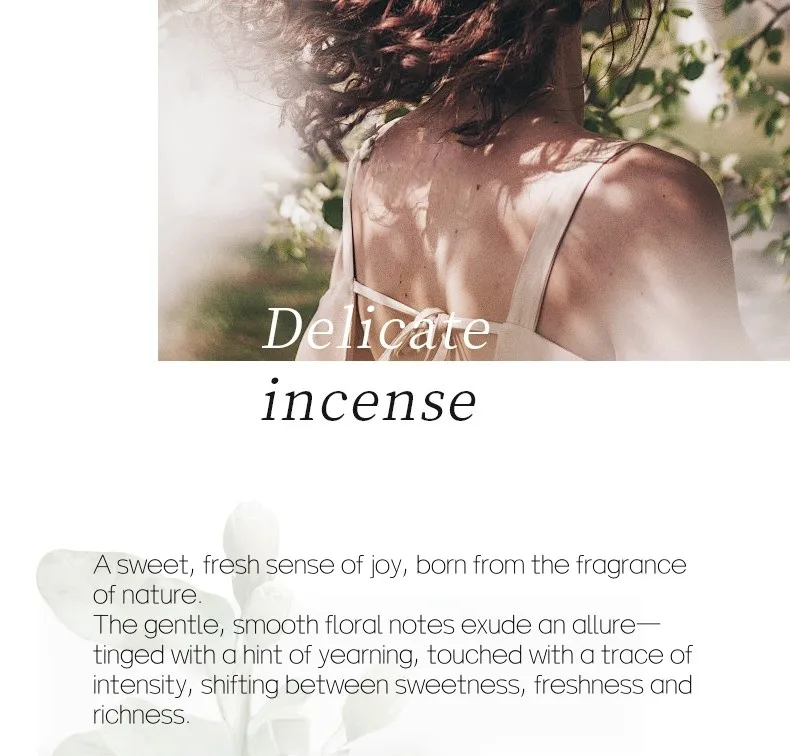 Fresh, elegant and long-lasting fragrance Just a drop of fragrant and lasting without dissipating Quality raw material artistic fragrance Highly luxurious brand flavor