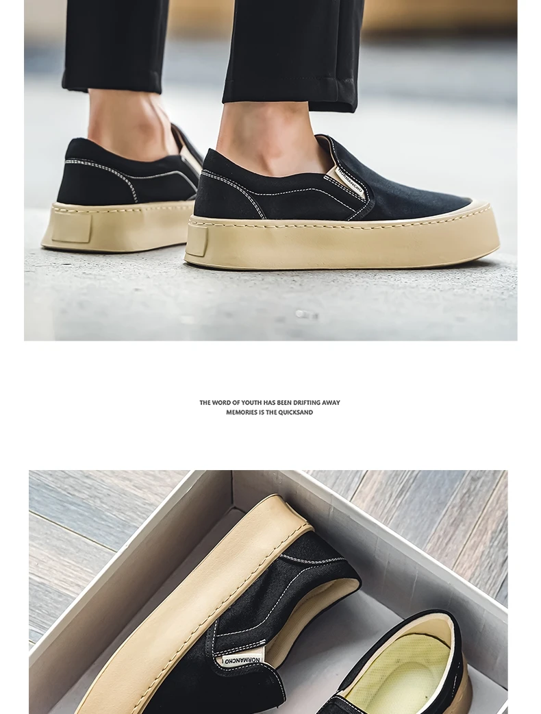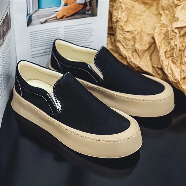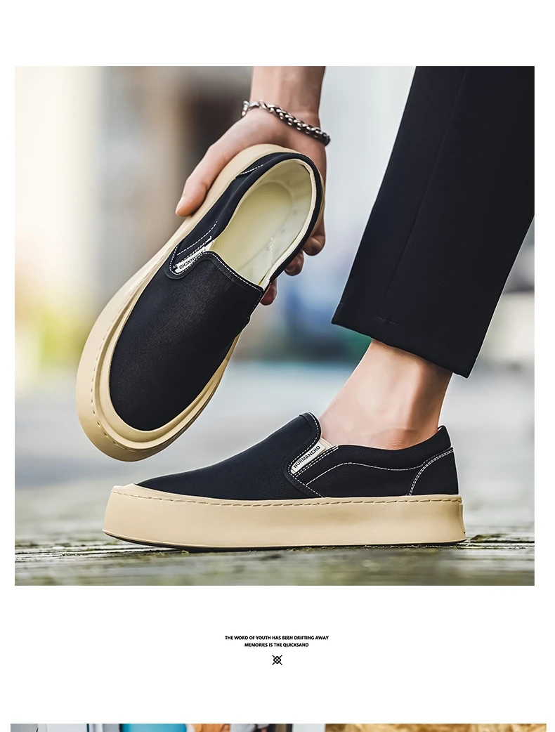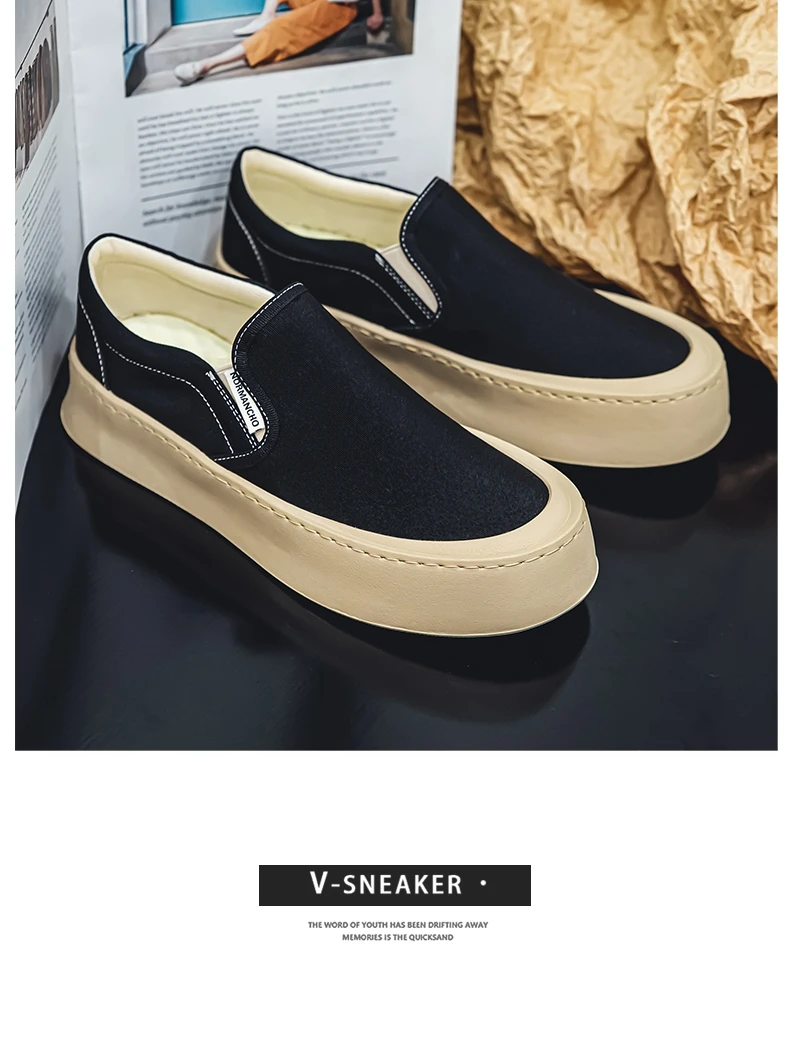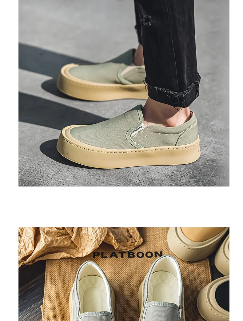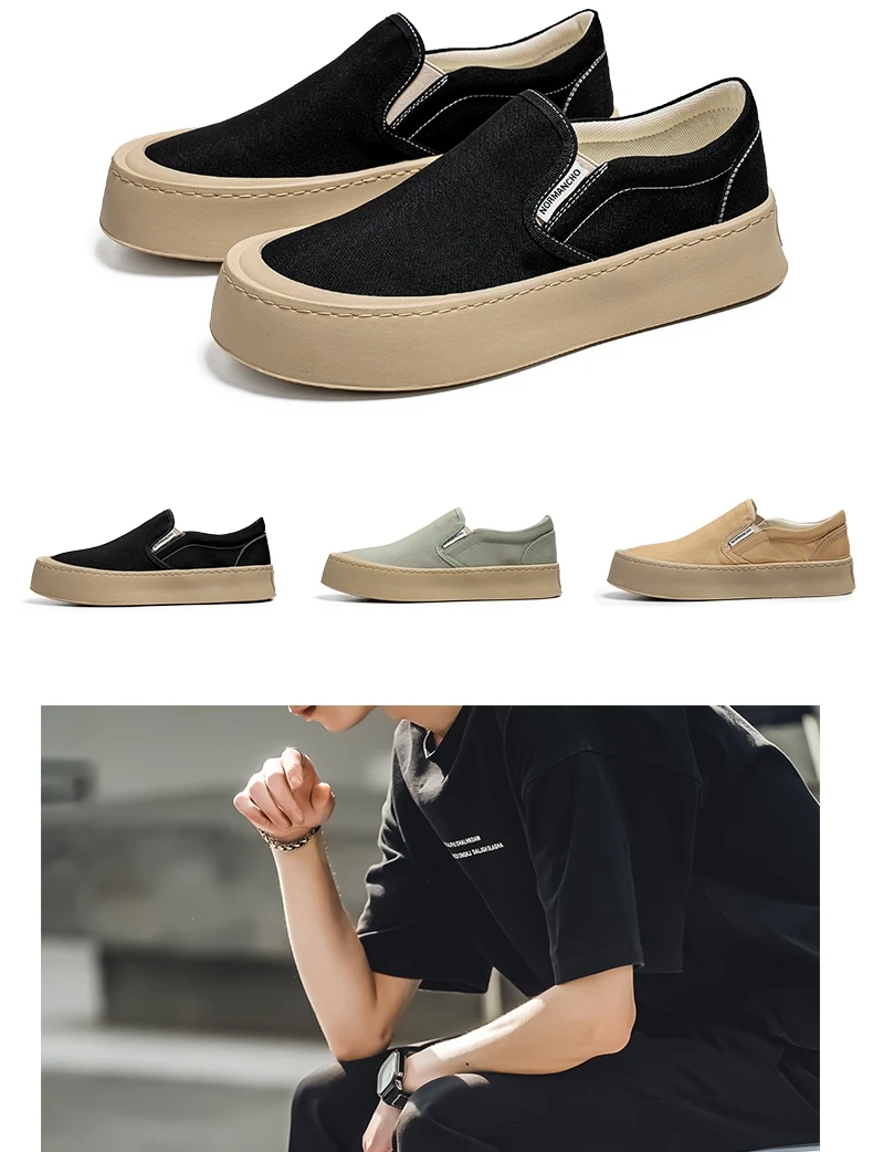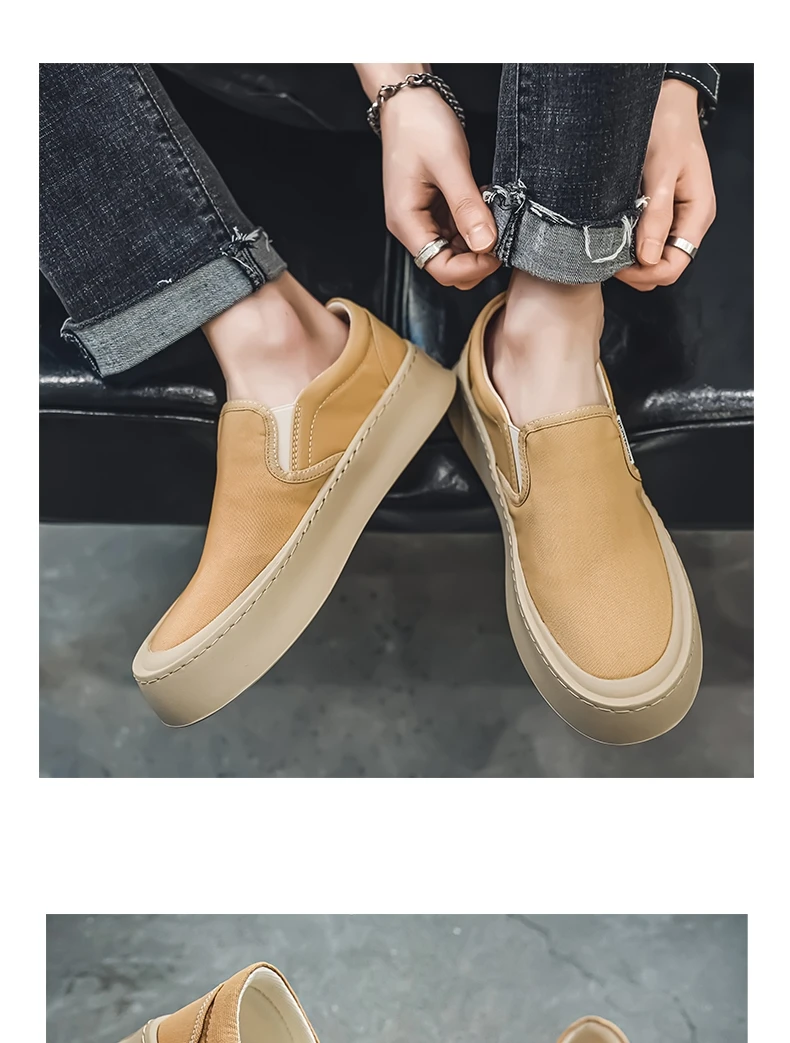 Breathable and Versatile Casual Shoes Men’s Lazy Loafers Shoes Canvas Thick Bottom Rubber Shoes