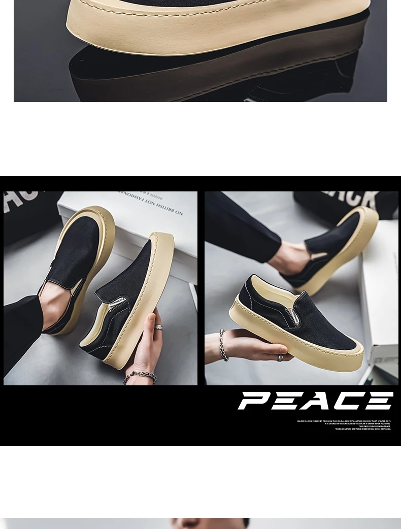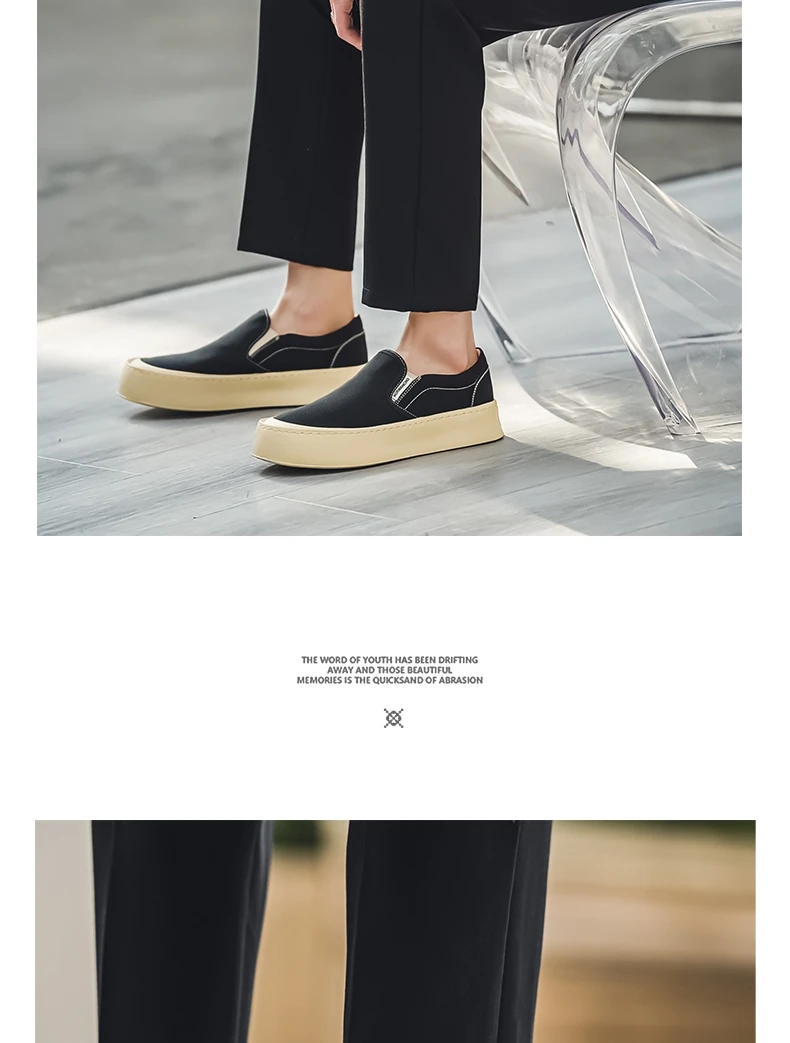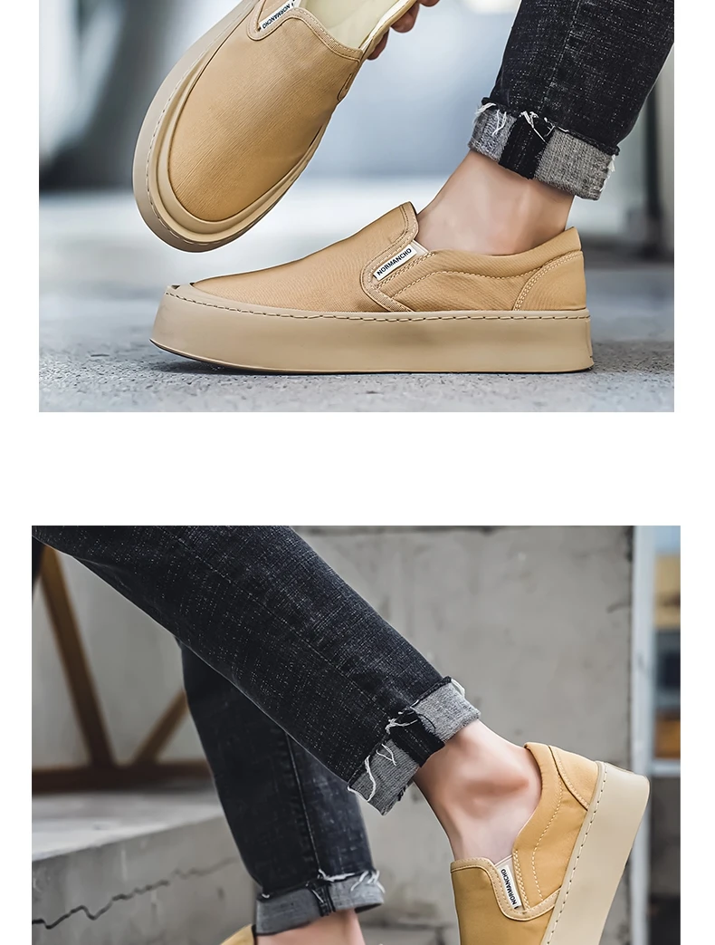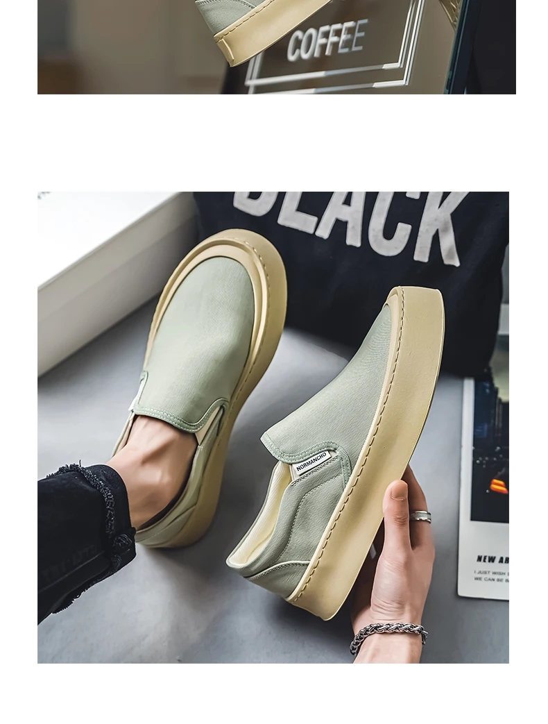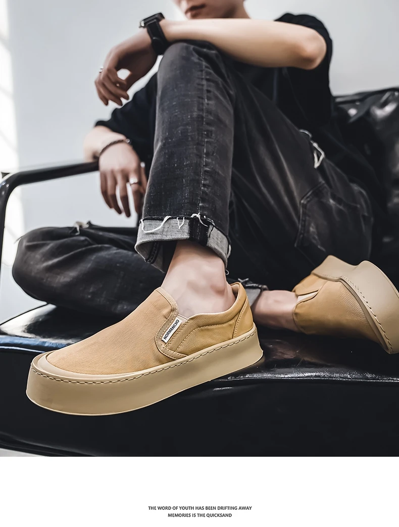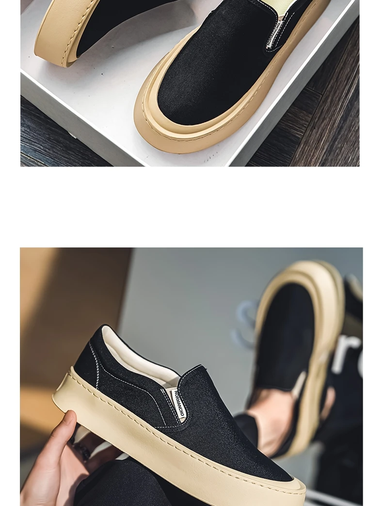 Breathable and Versatile Casual Shoes Men’s Lazy Loafers Shoes Canvas Thick Bottom Rubber Shoes