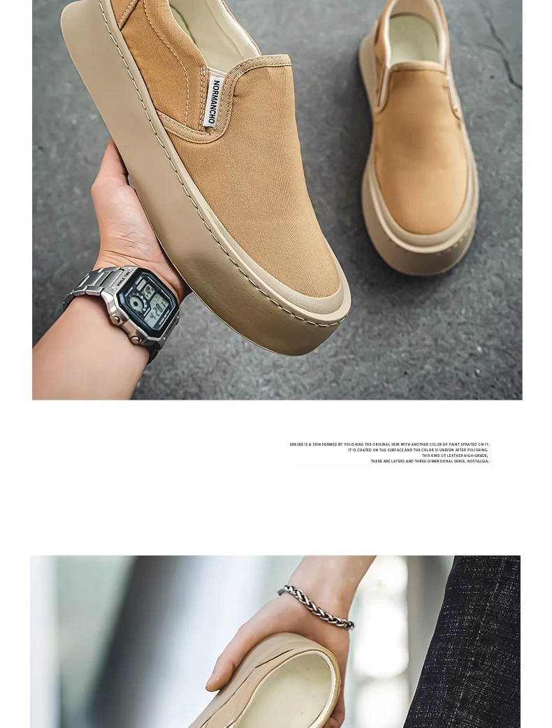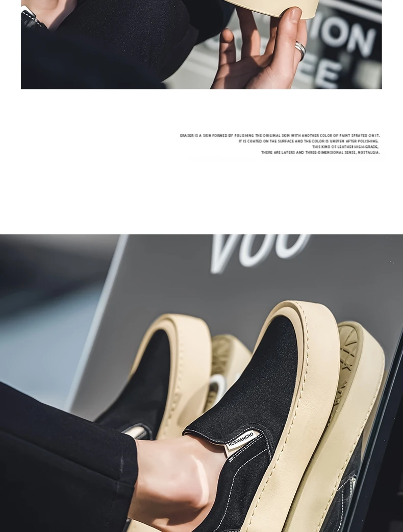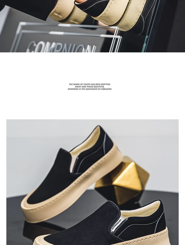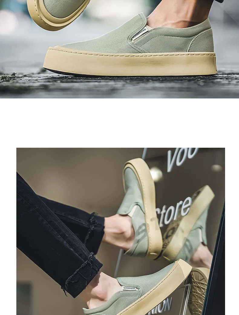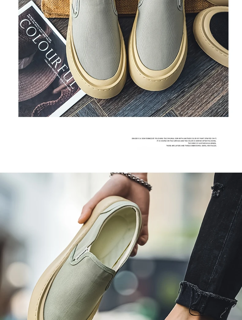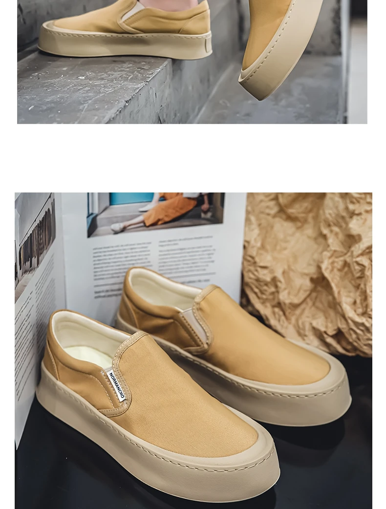 Breathable and Versatile Casual Shoes Men’s Lazy Loafers Shoes Canvas Thick Bottom Rubber Shoes