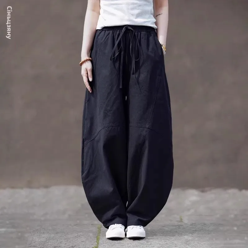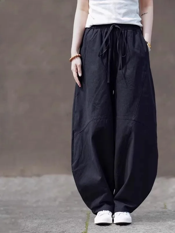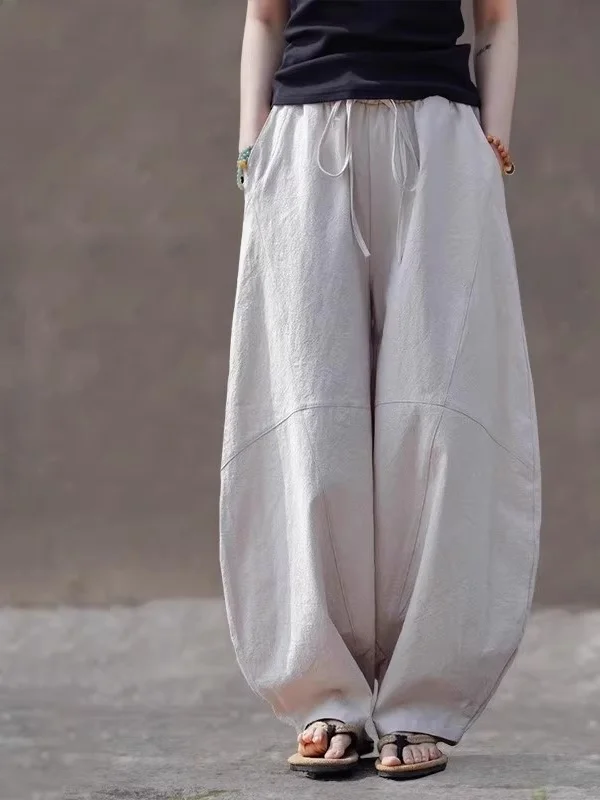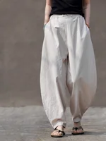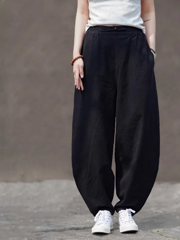 These pants boast a unique Chinese style with retro cotton linen material, offering a blend of traditional and modern fashion.
