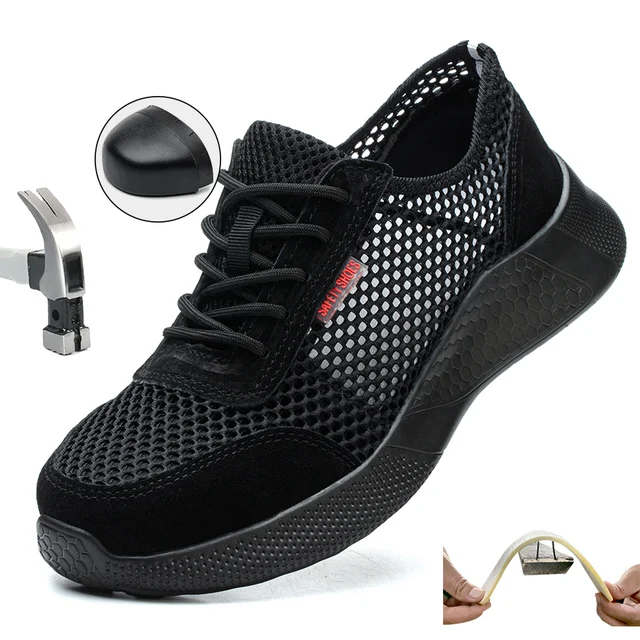 Breathable Men Work Shoes Summer Safety Shoes Lightweight Protective Sneakers Safety Steel Toe Shoes
