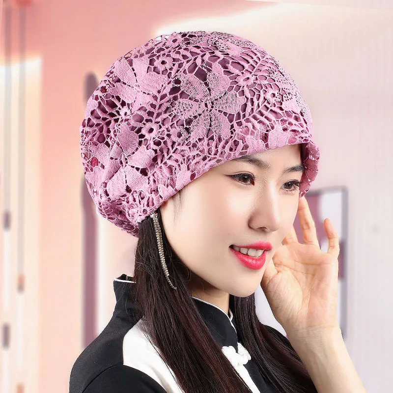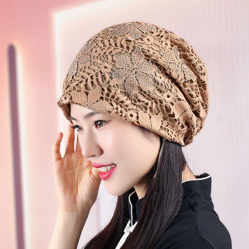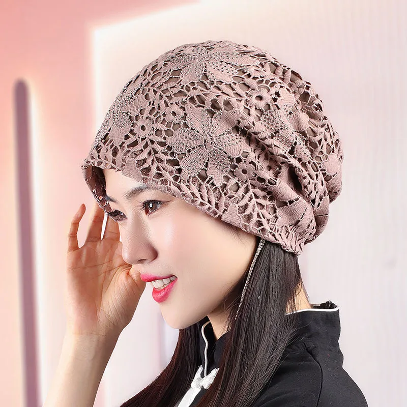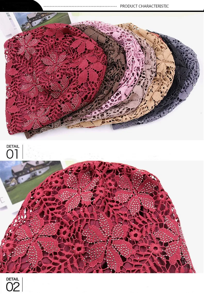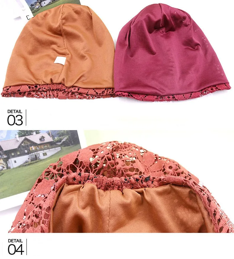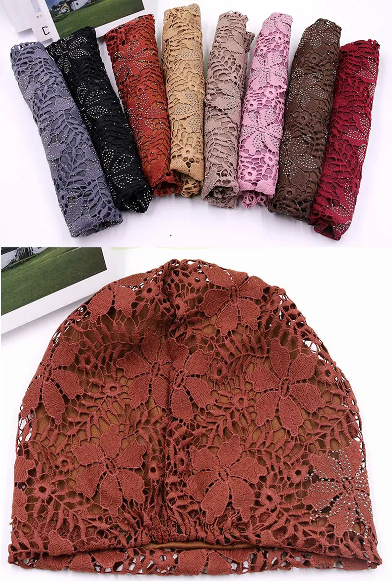 Breathable Summer Embroidery Lace Turban Hat Women Headscarf Bonnet Islamic Female Beanie Hat Ready to Wear Hijabs Head Cap