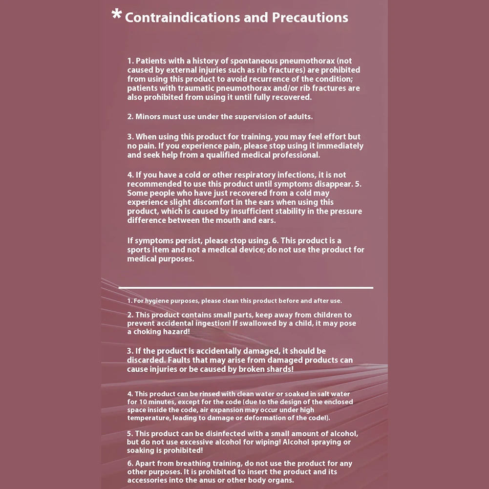 Features: 1.Abdominal Muscle Trainer: The breathing exercise device targets key muscle groups including the jaw, cheek, pectoralis major, rectus abdominis, and latissimus dorsi. It effectively exercises the face, abdomen, and lungs, improving sleep quality. 2.Suitable for All Ages: The deep breathing dumbbell aids in lung capacity training for children, enhances body function for adults, alleviates postpartum pressure for women, shapes waist and abdomen, and improves cardiopulmonary health for the elderly. 3.Inhalation and Exhalation Use: The lung capacity training device enables exhalation to eliminate excess waste gases, exercising abdominal muscles, while inhalation tones facial lines and boosts cardiopulmonary function. Alternating breathing exercises enhance effectiveness. 4.Bionic Breath Nozzle: Designed ergonomically, the deep breathing trainer fits comfortably for both inhalation and exhalation, providing a seamless experience. 5.Adjustable Breathing Dumbbell: Featuring double adjustable resistance, it offers dual-purpose breathing functions with five weight adjustments ranging from 20-100g.