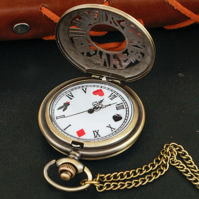 Bronze Fairy Tale Alice Poker Rabbit Hollow Characteristic Quartz Pocket Watch Retro Men’s and