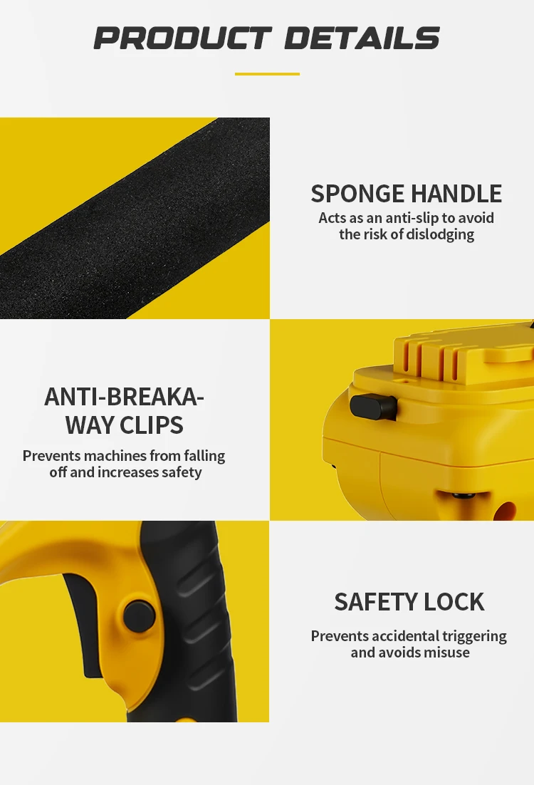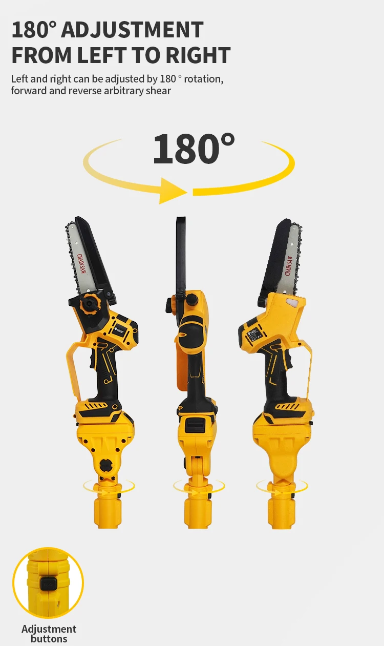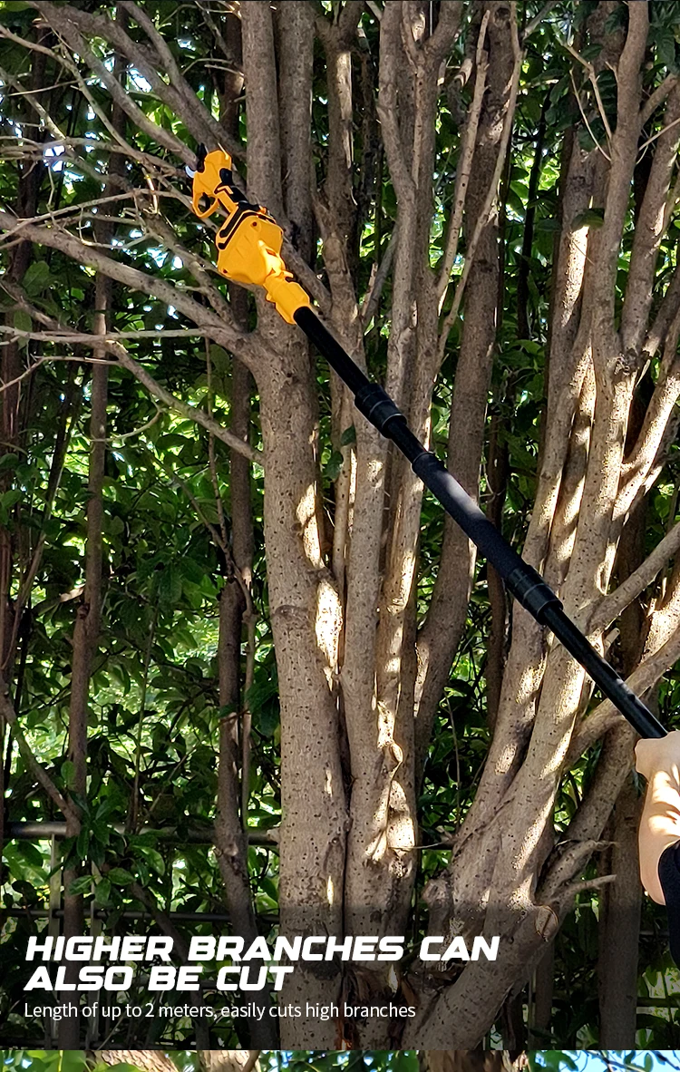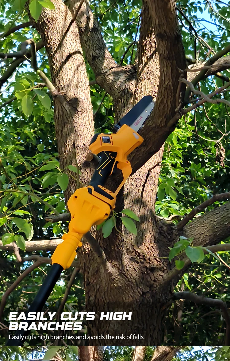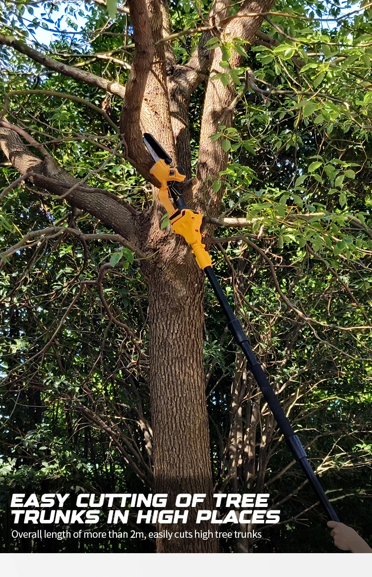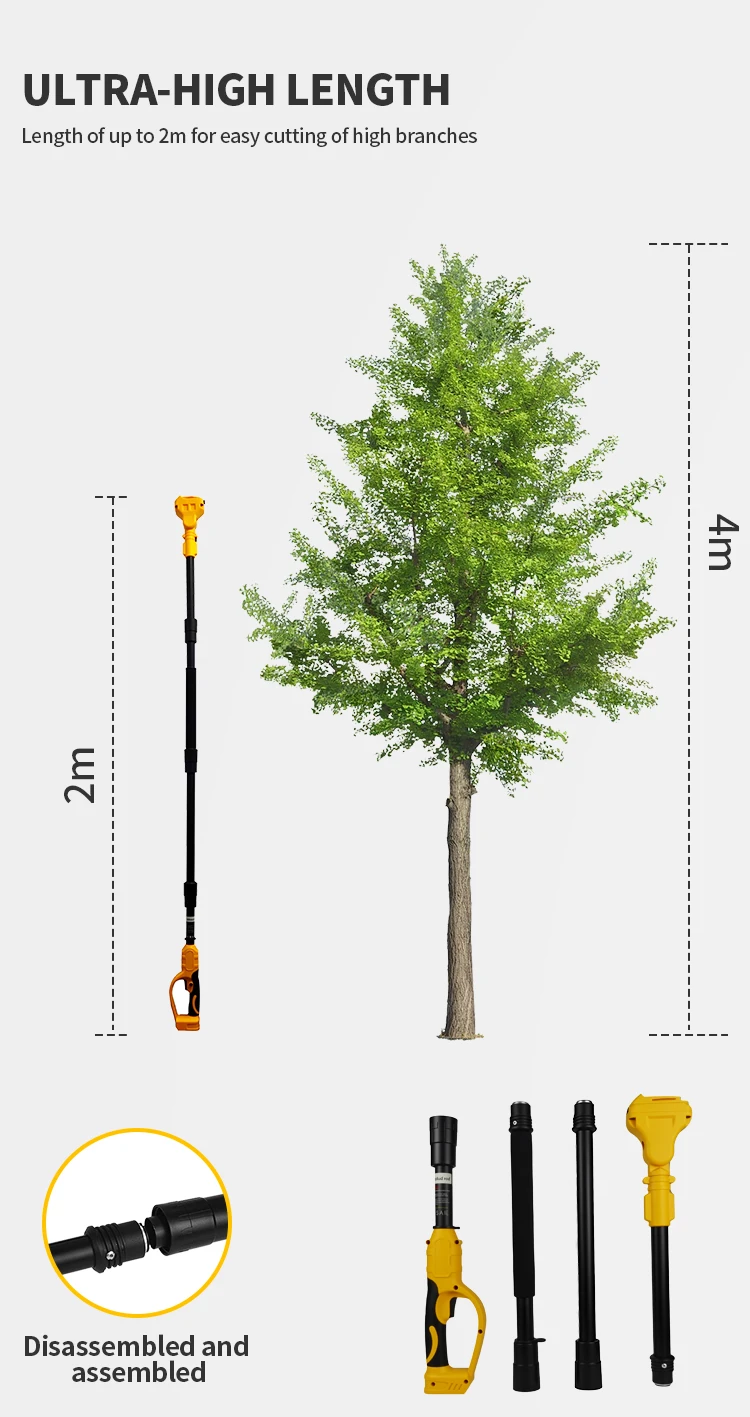 – High-efficiency sawing, extension pole removable design, high branches and low trees can be sawed.