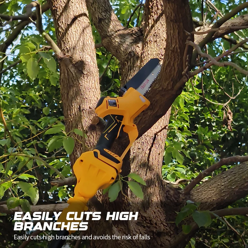 – High-efficiency sawing, extension pole removable design, high branches and low trees can be sawed.