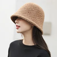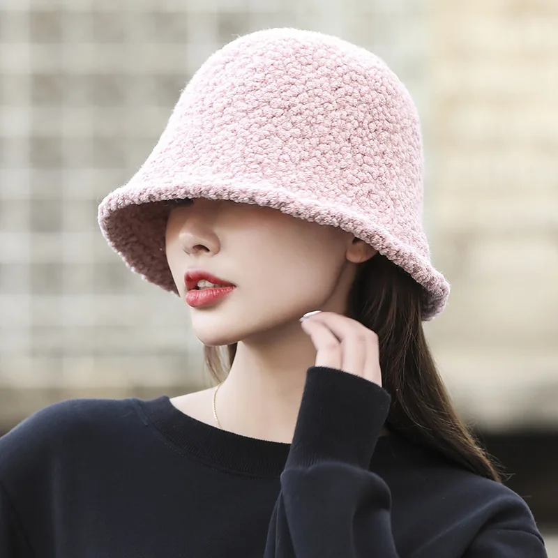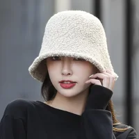 Bucket Hat For Women Thickened Warm Ear Protector Cap French Wool Hat Lady Panama Outdoor Hiking Knitted Fisherman Hat